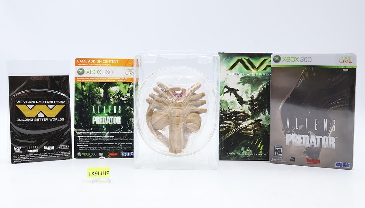 Condition: The box has been opened, all of the contents are mint with the exception of the facehugger. The facehugger's tail has been broken off due to it never actually being removed from the packaging, and remaining in the same position for what has likely been over a decade. Due to its time spent stationary, the resin used for the legs is now stuck to the main body. The disc case has never been opened, and the we believe the expansion codes have never been used. The packaging has some wear. Comes as shown.