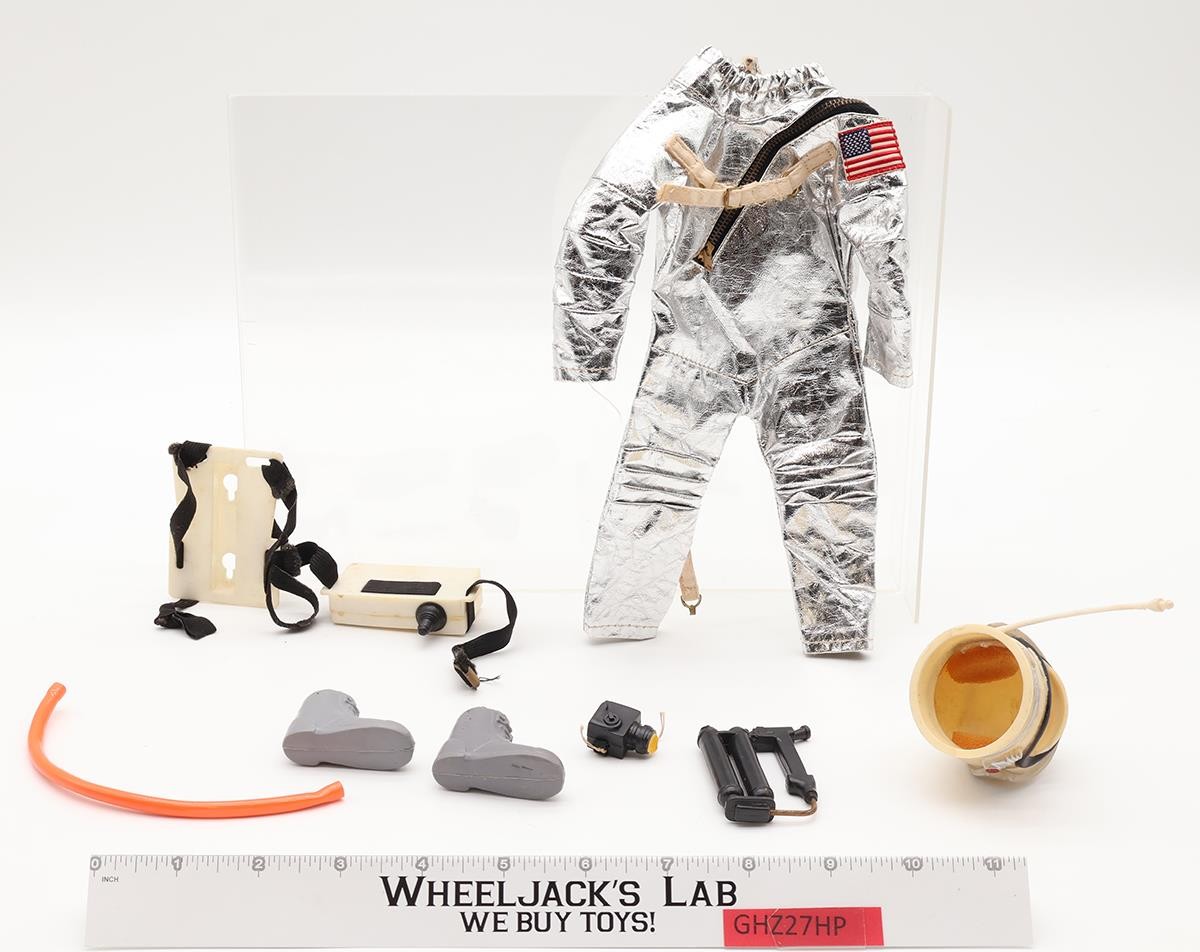 Accessory Condition: Missing only the detector, metal brace, and the two discs. The two silver boots are split. The jumpsuit is in great condition and the zippers all work. The helmet is complete with padding inside. There are a few melted areas on the top of the helmet and a scratch on the visor. Comes as shown.