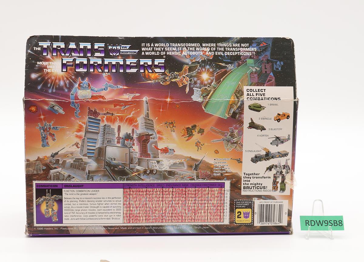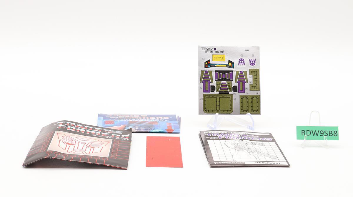 Onslaught 100% Complete W/BOX & INSERT G1 Transformers Hasbro UNUSED STICKERS