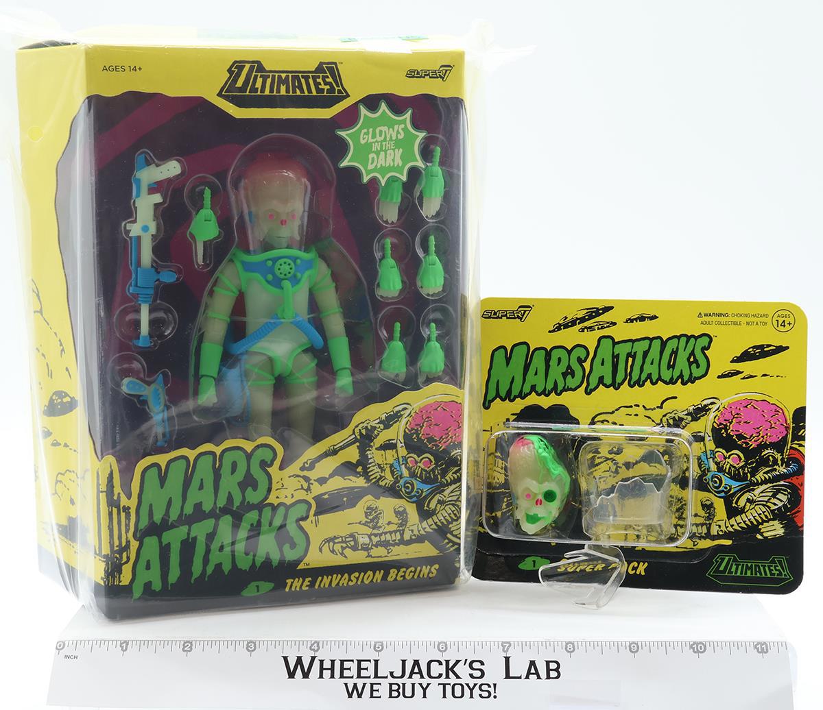 W2 Martian W/ Pre-Order Super Pack GITD Mars Attacks Ultimates Super7 NEW SEALED