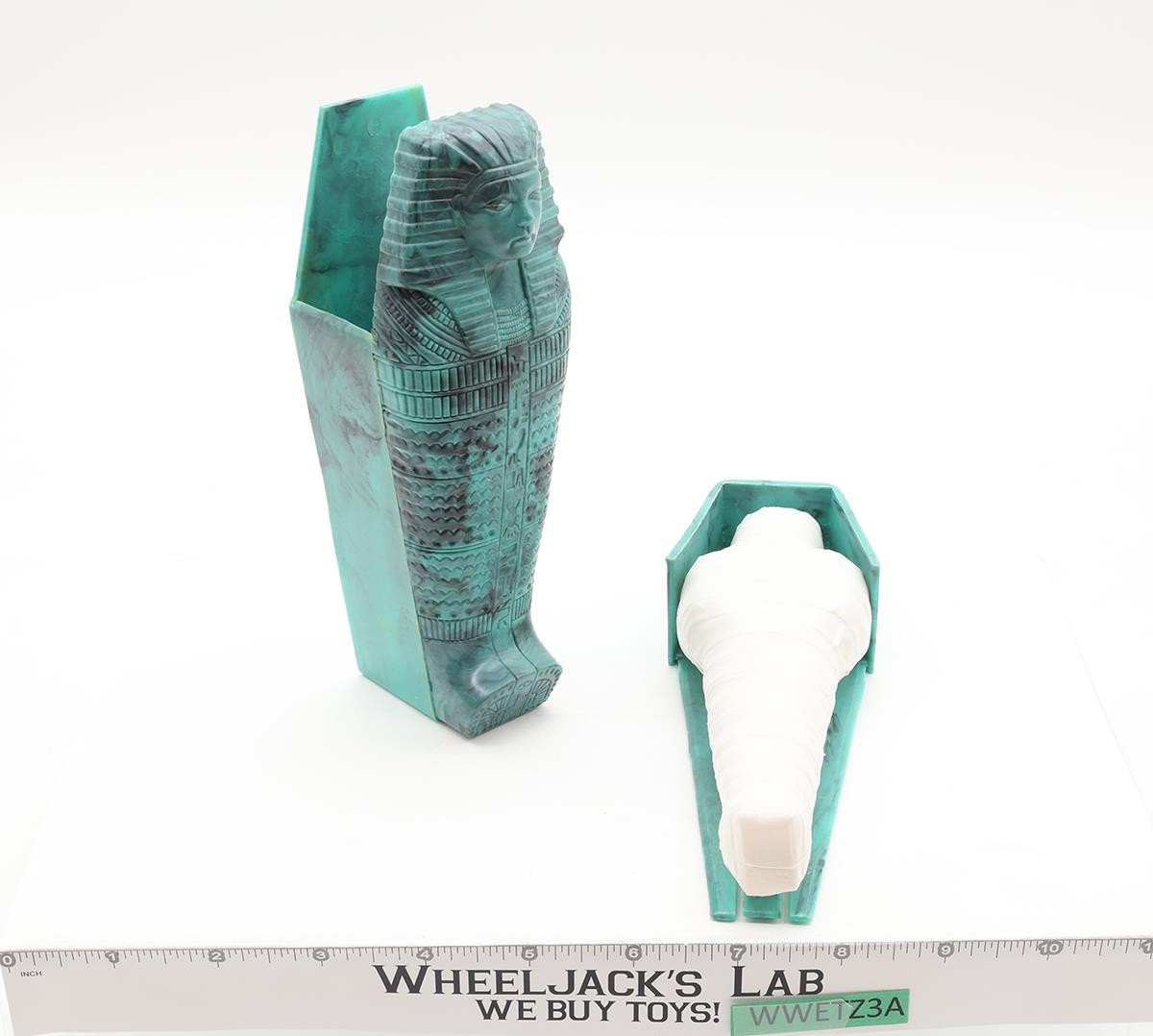 Accessory Condition: Rated 85 with light wear. The clothing and net looks as if they were new. The mummy pulls out smoothly from its coffin. Missing only the vehicle and two colored gems. Two extra red gems have been included. Comes as shown.