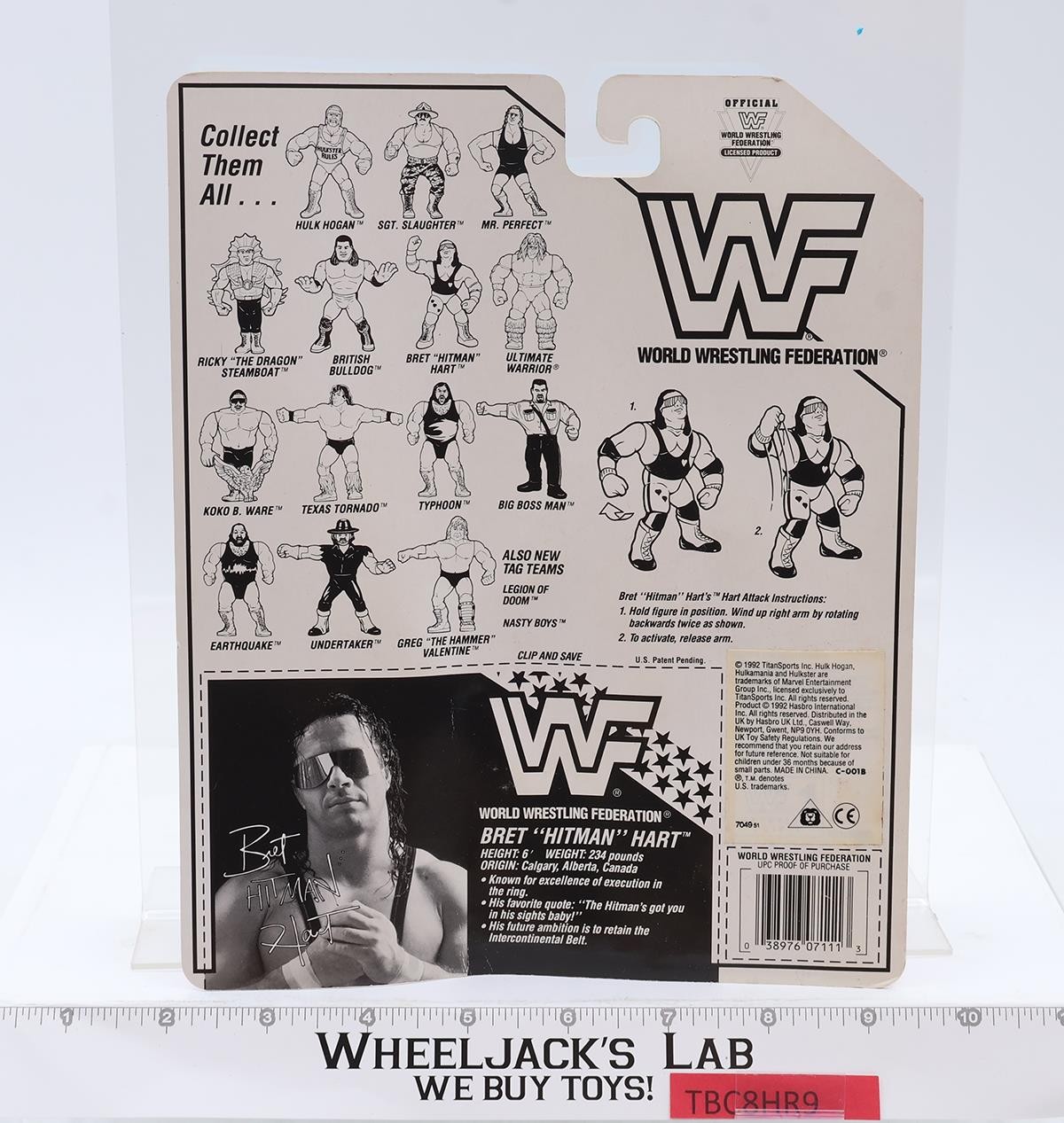 Bret Hitman Hart PURPLE Hart Attack WWF Wrestling Hasbro 1992 Vintage MOSC