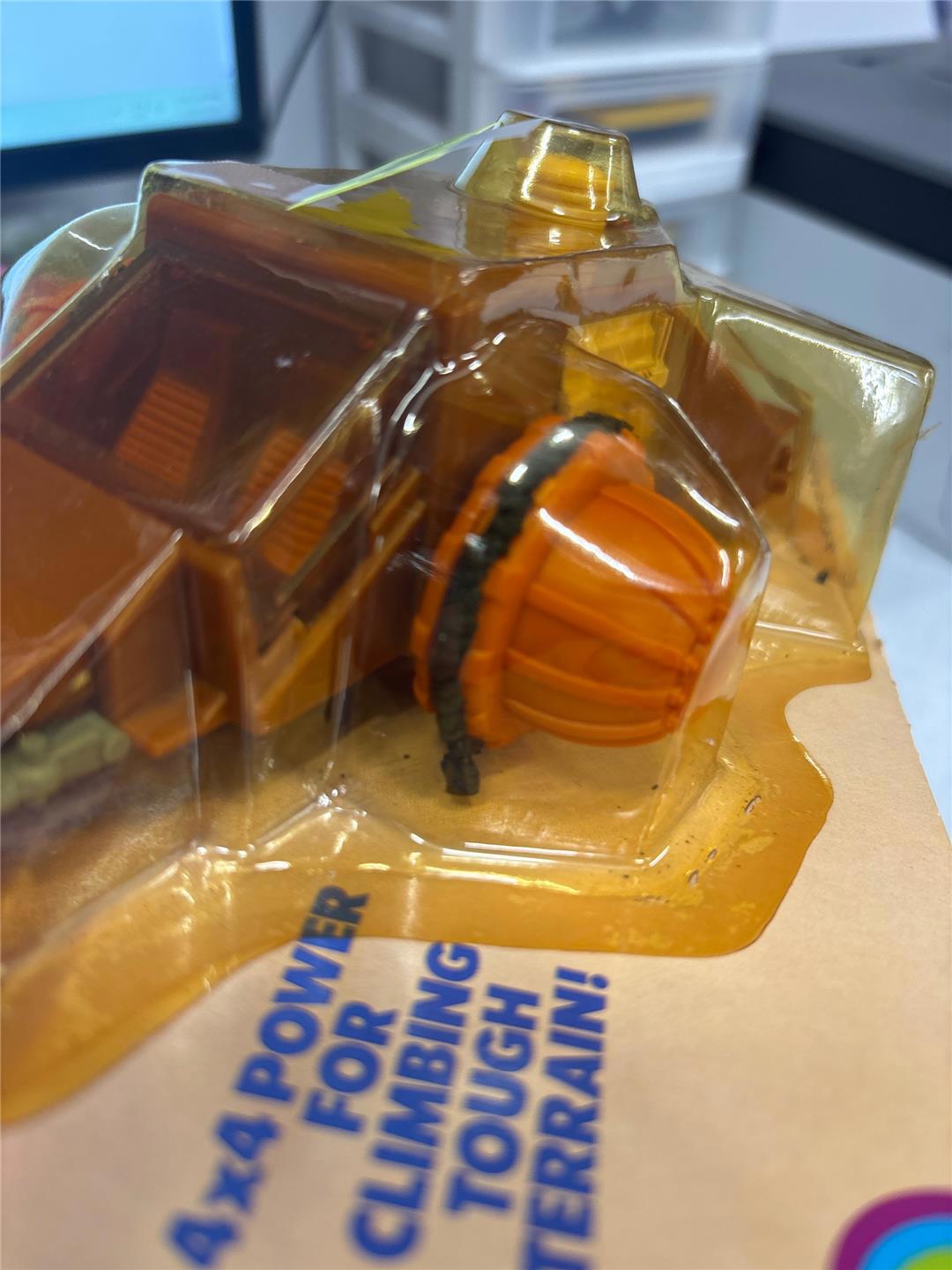 Are you selling your toy collection? Message us for a quote. Item Condition: Factory sealed on the card. The rubber on the front wheels of the vehicle have decayed, and have even seemingly melted off. The last two images provided will display the damage. Card: The card has some wear and does not lie completely flat. The pictures will show its condition. Bubble: Faded with a crack towards the bottom of the bubble by the rear left wheel. Comes as shown.