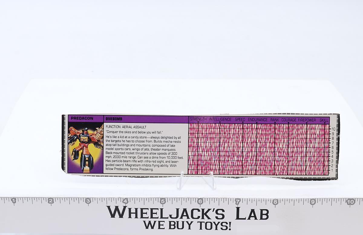 Divebomb Action Figure Tech Spec 1986 Vintage Hasbro G1 Transformers