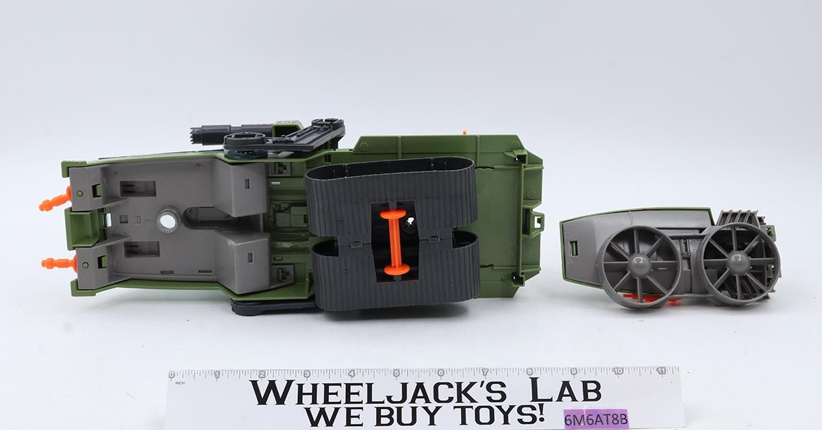 Condition: Rated 85 with light wear, needs cleaning. The front treads/wheels connecting post is broken. Our grading scale ranges from 1 to 100, with mint-flawless at 100, near-mint at 95, excellent at 90, and so on. Comes as shown.