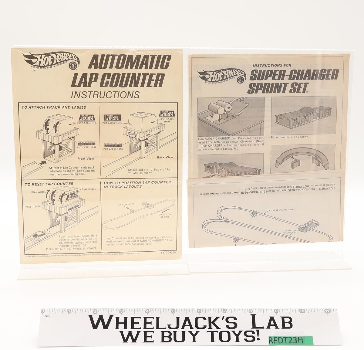 Papers: Papers are legible; have yellowed some with age. Instructions for Super-Charger Sprint Set opens up to 16" x 13." Lap Counter paper has wrinkles.