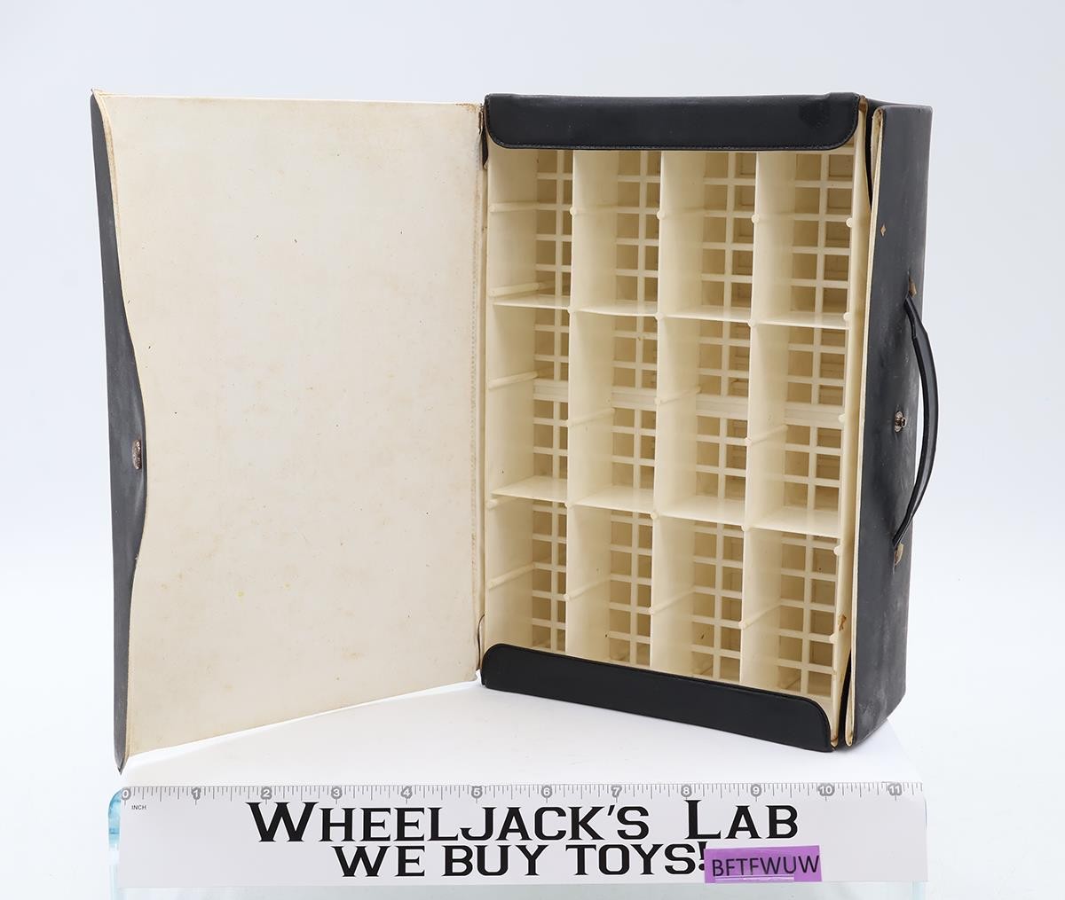Condition: Includes two trays that are not cracked or broken. The item has some wear and will need cleaning. The snap and handle both are intact. The handle area is not torn. The snap is rusted on the outside The vinyl is starting to crack and tear at several of the corner areas. They are not split clear through; just one surface area. Comes as shown.