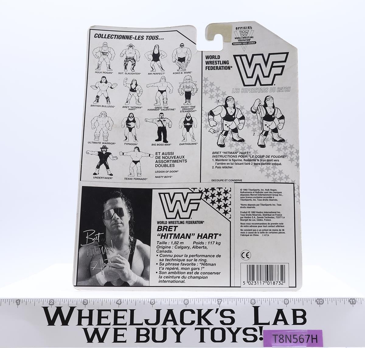 Bret Hitman Hart 100% Complete W/ Card WWF Wrestling 1992 Hasbro Figure NR MINT