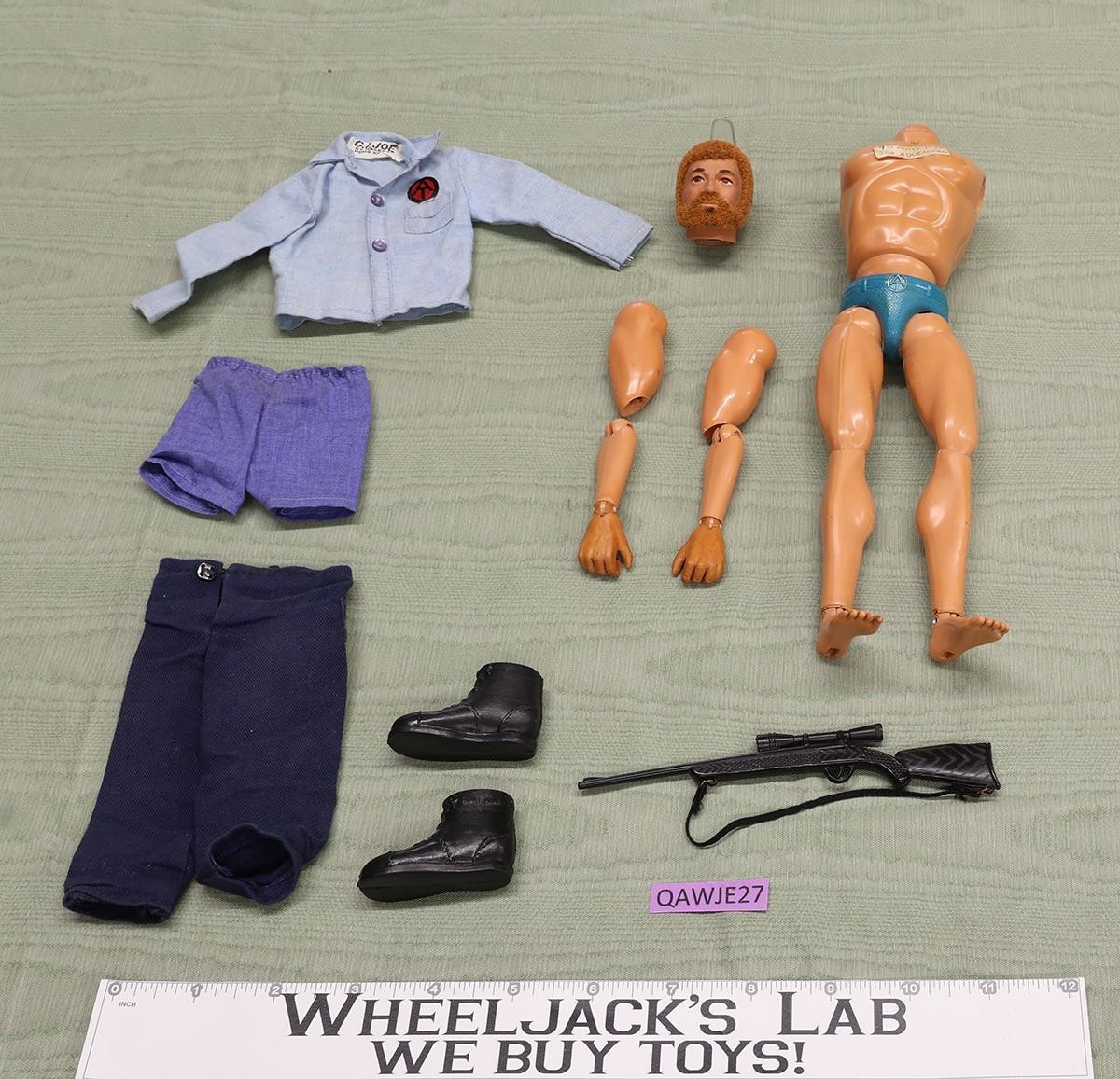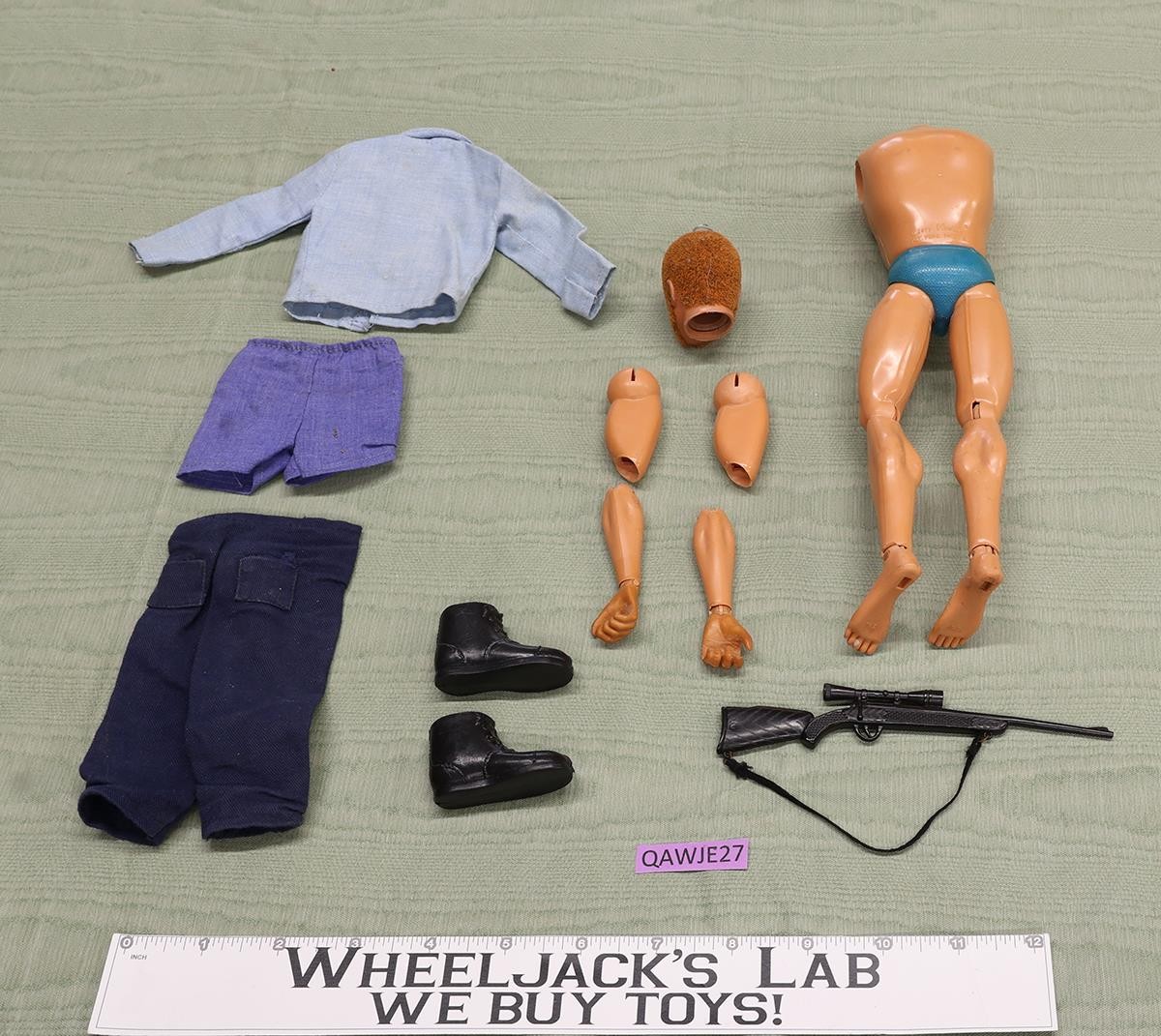 Condition: The item has some wear, with both arms and head separated from the body. The flocked hair is intact. The tip of the left index finger is gone. Comes as shown.