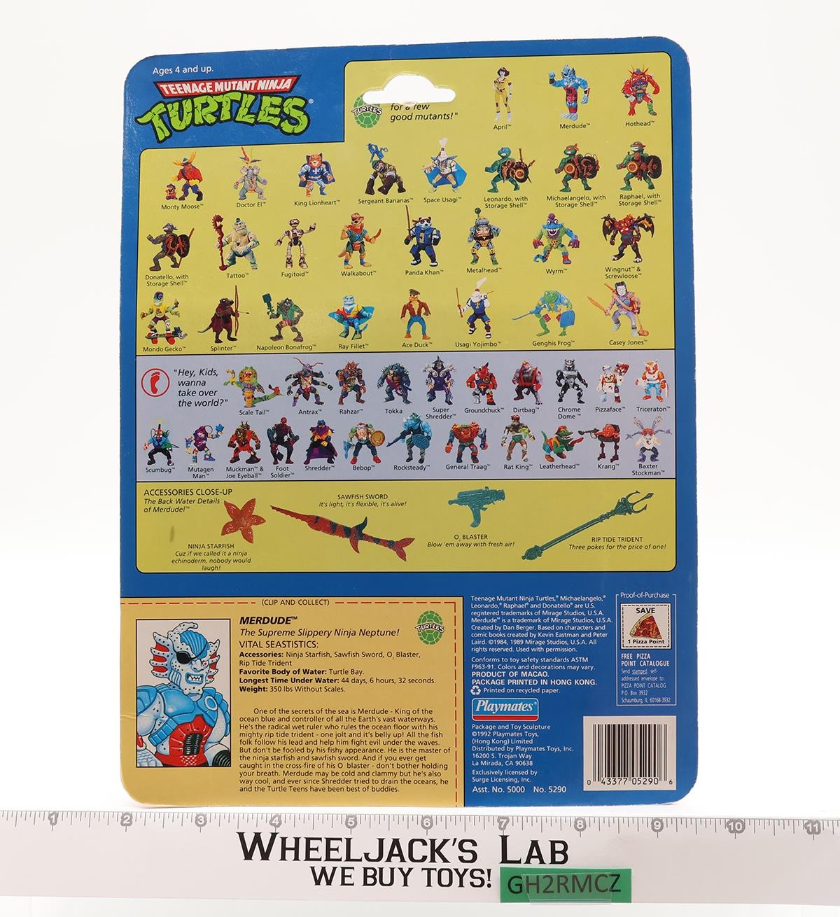 Merdude 100% Complete W/Card Bubble TMNT 1992 Playmates Vintage Action Figure