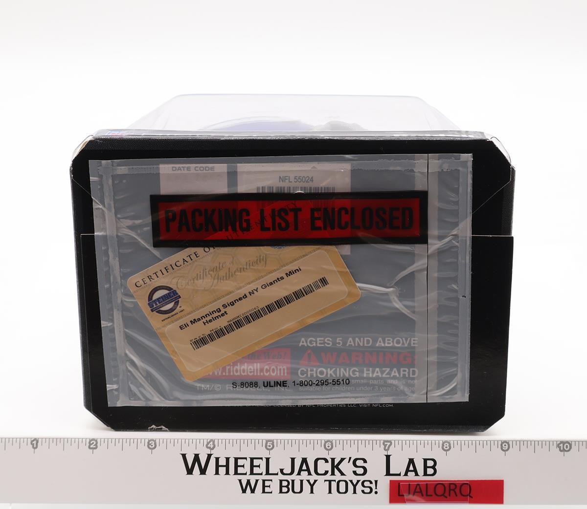 Condition: The item is in original packaging. The packaging has little wear. The window is clear and intact. The mini helmet (Riddell) is signed by Eli Manning and a Certificate of Authenticity from Steiner Sports Memorabilia is enclosed in a clear packing list envelope that is attached to the bottom of the package. Comes as shown.