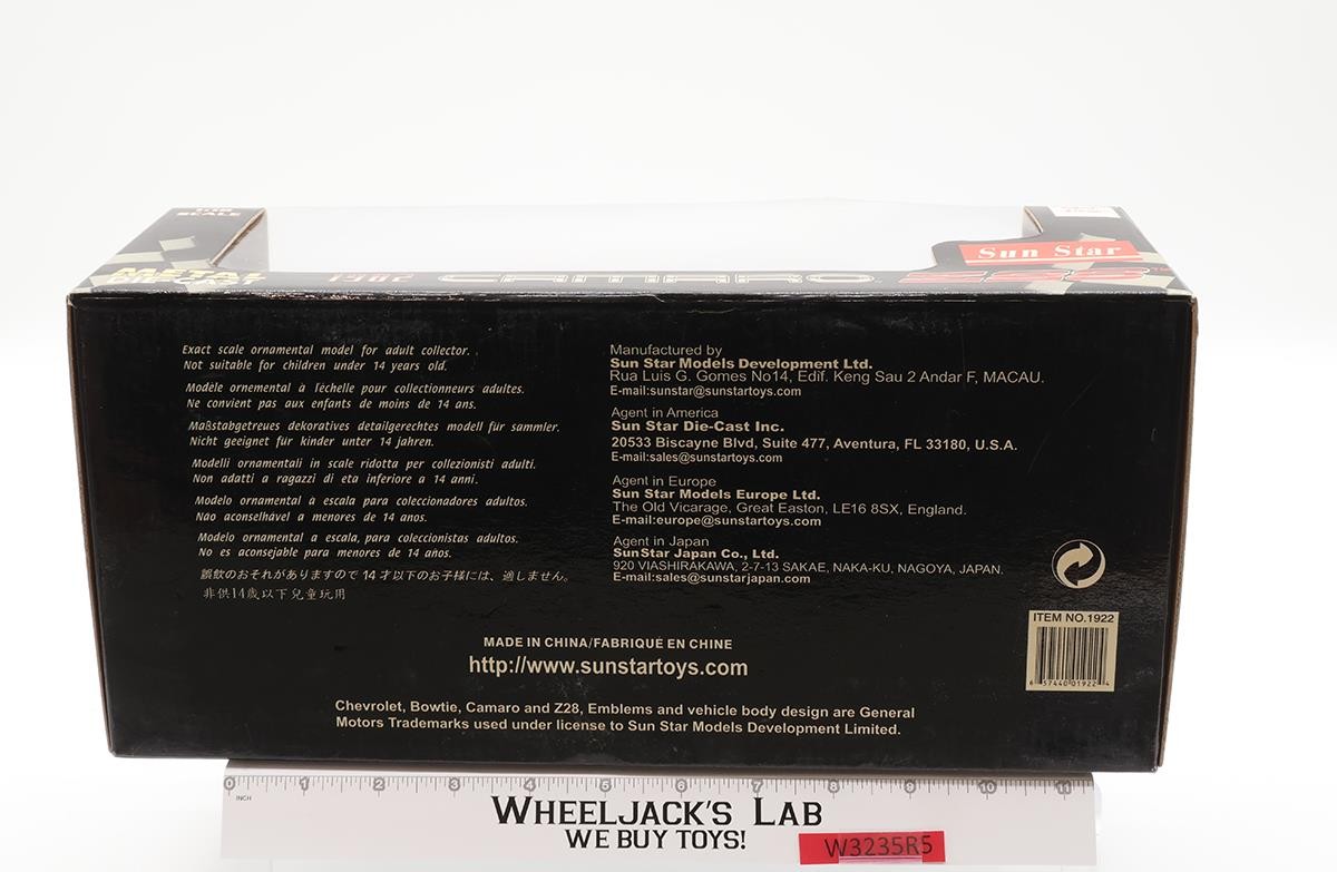 1982 Chevrolet Camaro Z28 Sun Star 1/18 Scale Die-Cast Car