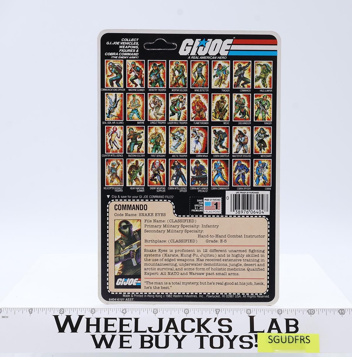 Snake Eyes V1 Straight Arms Complete 32 Cardback Unpunched 1982 G.I. Joe Hasbro