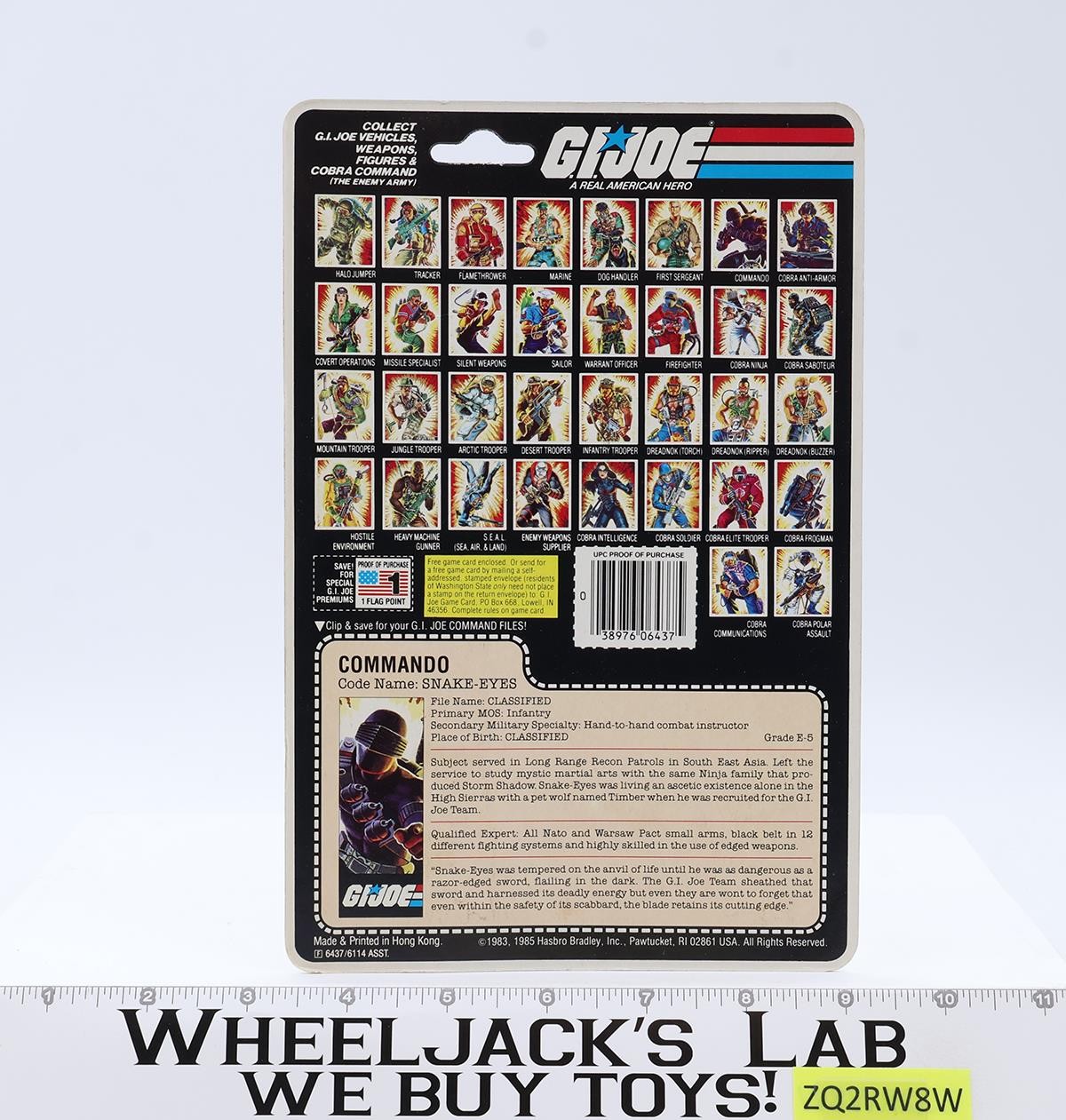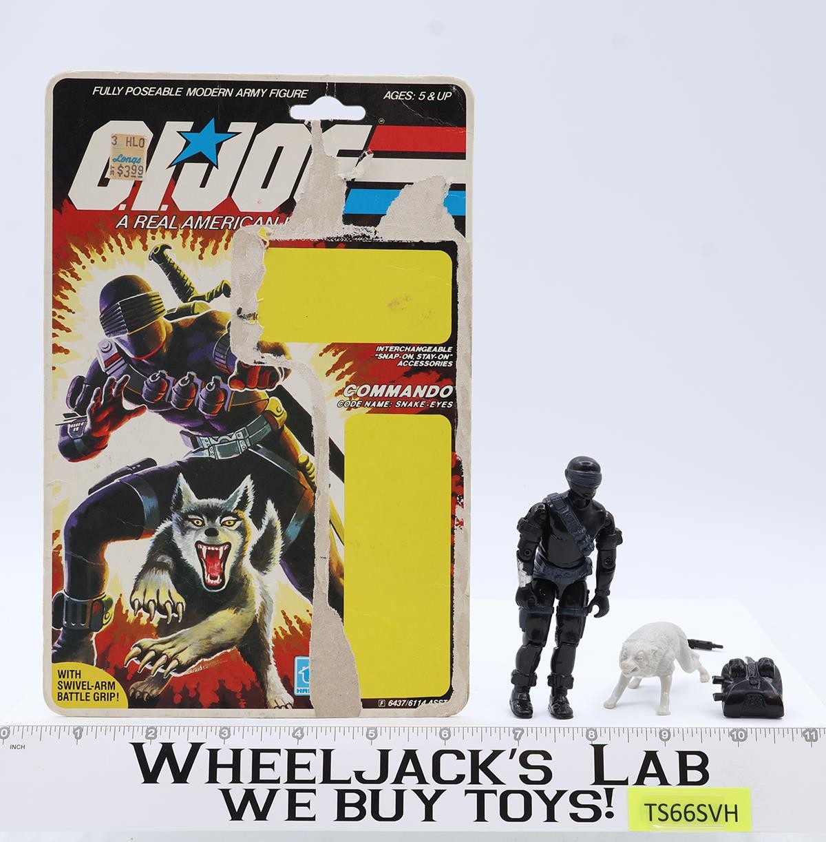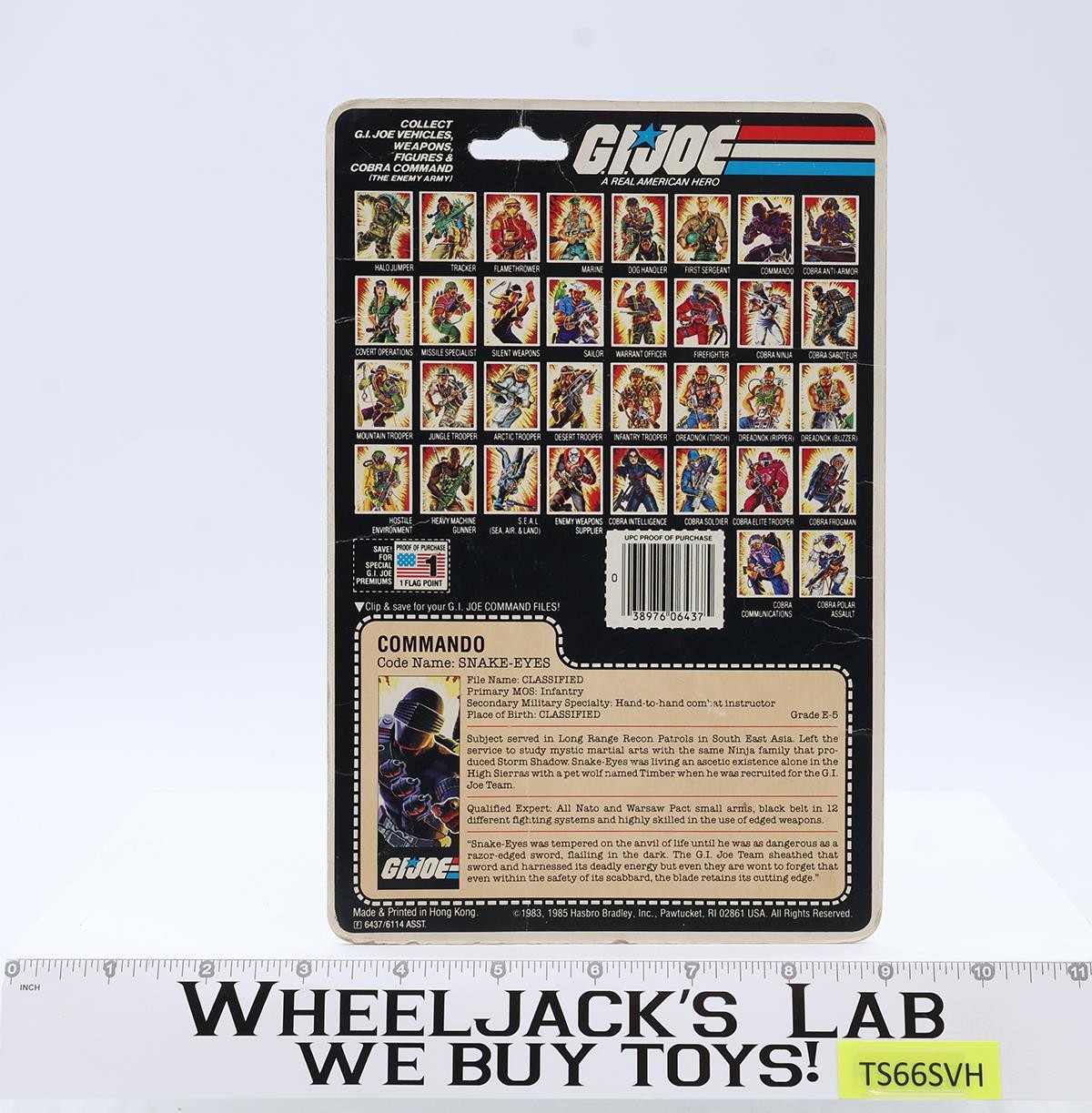 Snake Eyes V2 W/ Timber Complete 34 Cardback 1985 G.I. Joe Hasbro Vintage NM