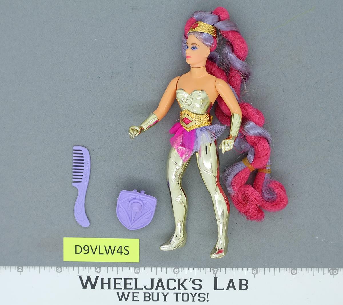 Condition: Rated 88 in light condition. Super nice, like-new Entrapta! She is beautifully gold and shiny with silky, long braided hair, fastened with what appears to be original rubber bands. Our grading scale is 1 - 100, with mint flawless a 100, near mint a 95, excellent a 90, and so on. Comes as shown.
