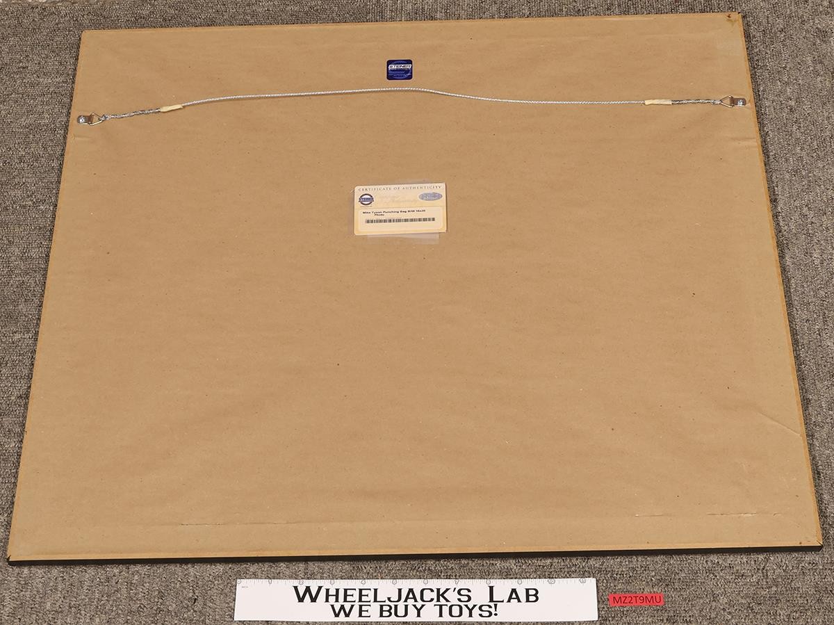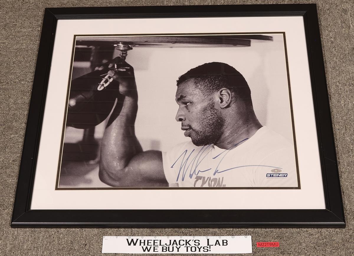 Condition: The picture has light wear. It has been autographed by Mike Tyson. Includes a certificate of authenticity. It measures approximately 20 inches x 16 inches. The frame measures approximately 26 inches x 22 inches. Comes as shown.