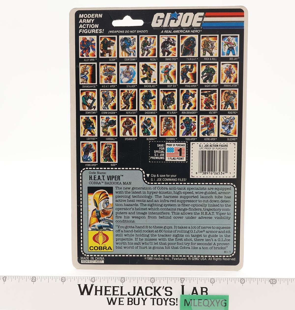 H.E.A.T. Viper V1 COMPLETE W/34 Cardback 1989 G.I. Joe Hasbro Vintage Figure