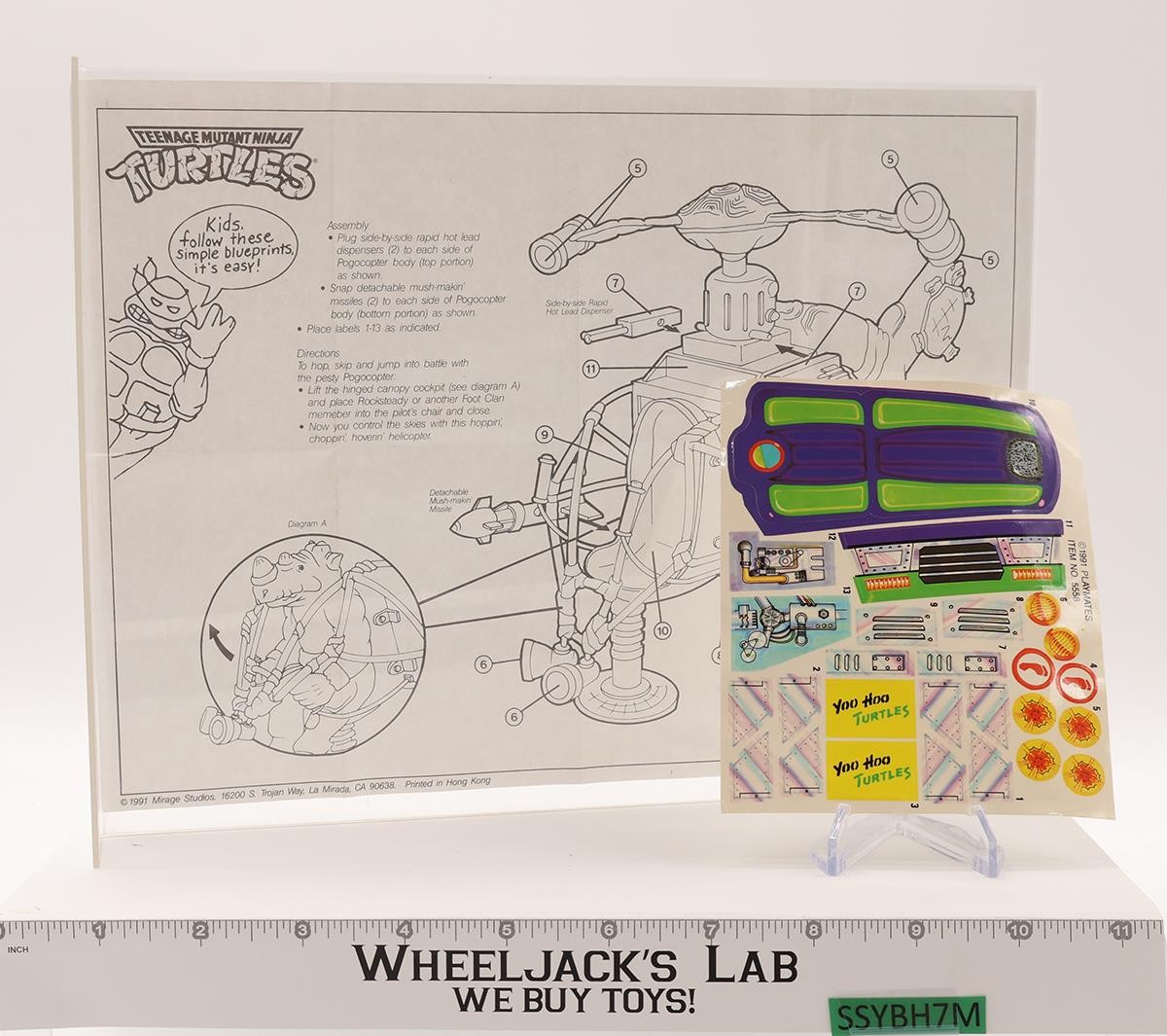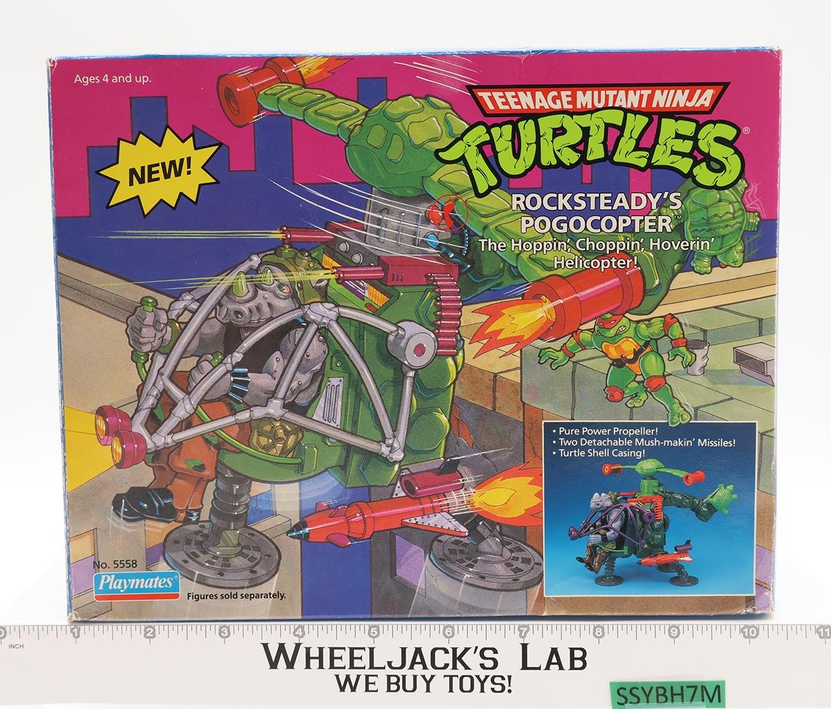 Rocksteady's Pogocopter 100% Complete TMNT 1991 Playmates Action Figure Vehicle