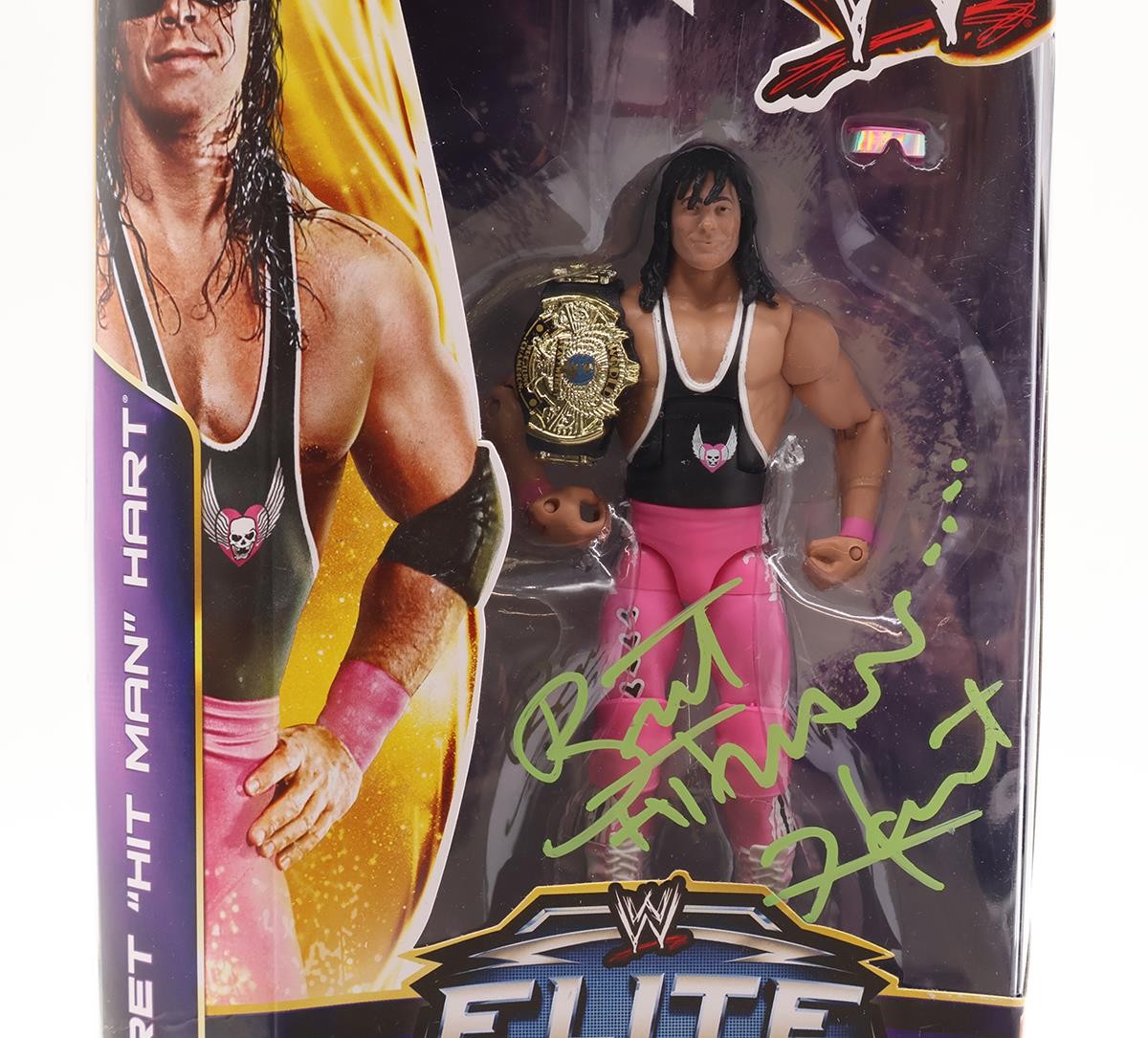 Bret Hit Man Hart AUTOGRAPHED WWE Flashback Elite Collection Mattel NEW SEALED