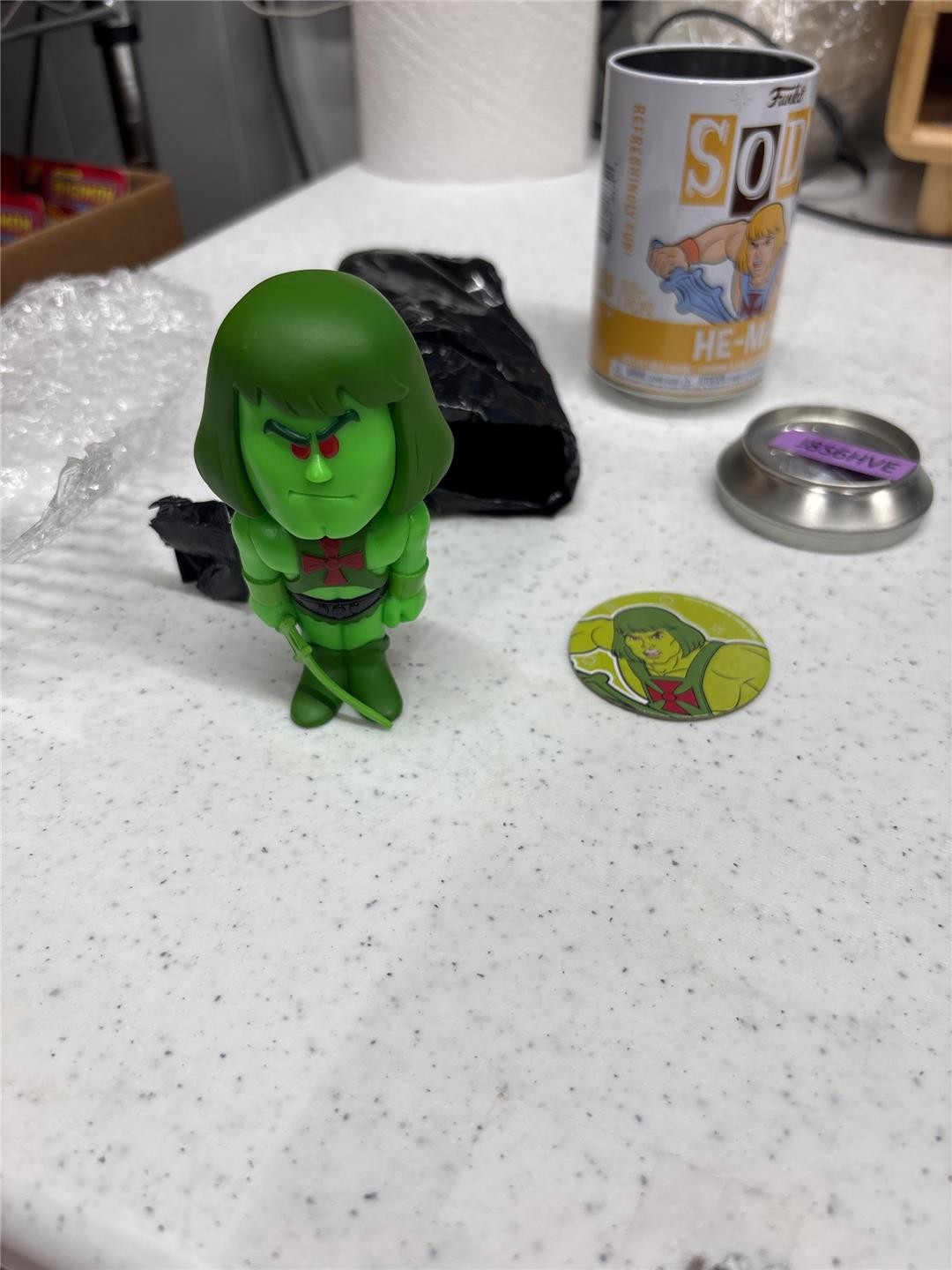 Condition: The figure has been removed from his original packaging, but he still mint. The can has light wear. Comes as shown.
