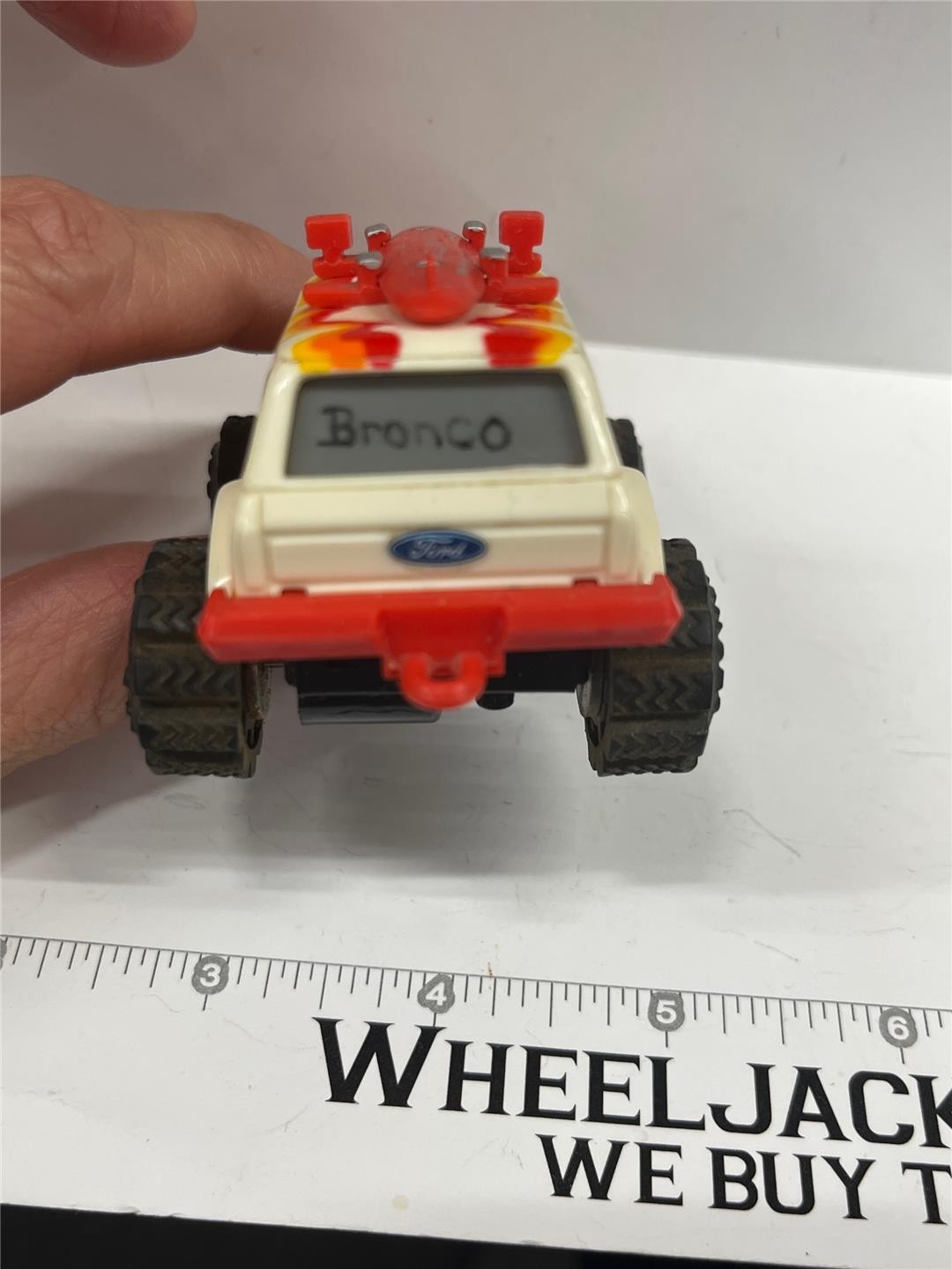 Note: Initials "KC" and yellow paint on truck bed lights were added by a previous owner. Roof rack, surf board, and end of side pipes have been embellished with silver paint. Yellow paint added underneath headlights on fron