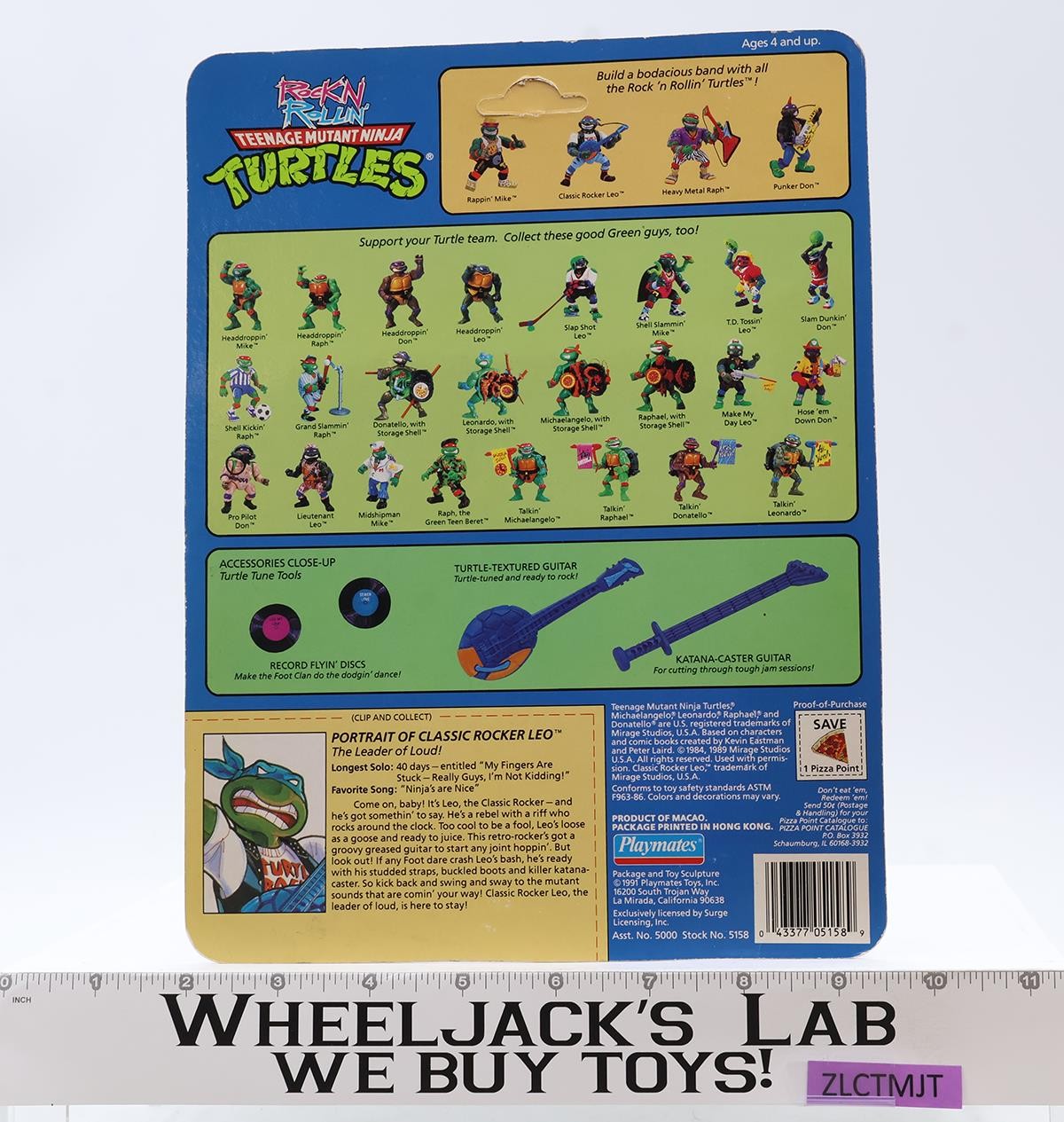 Classic Rocker Leo w/Cardback 100% Complete TMNT 1991 Playmates Figure
