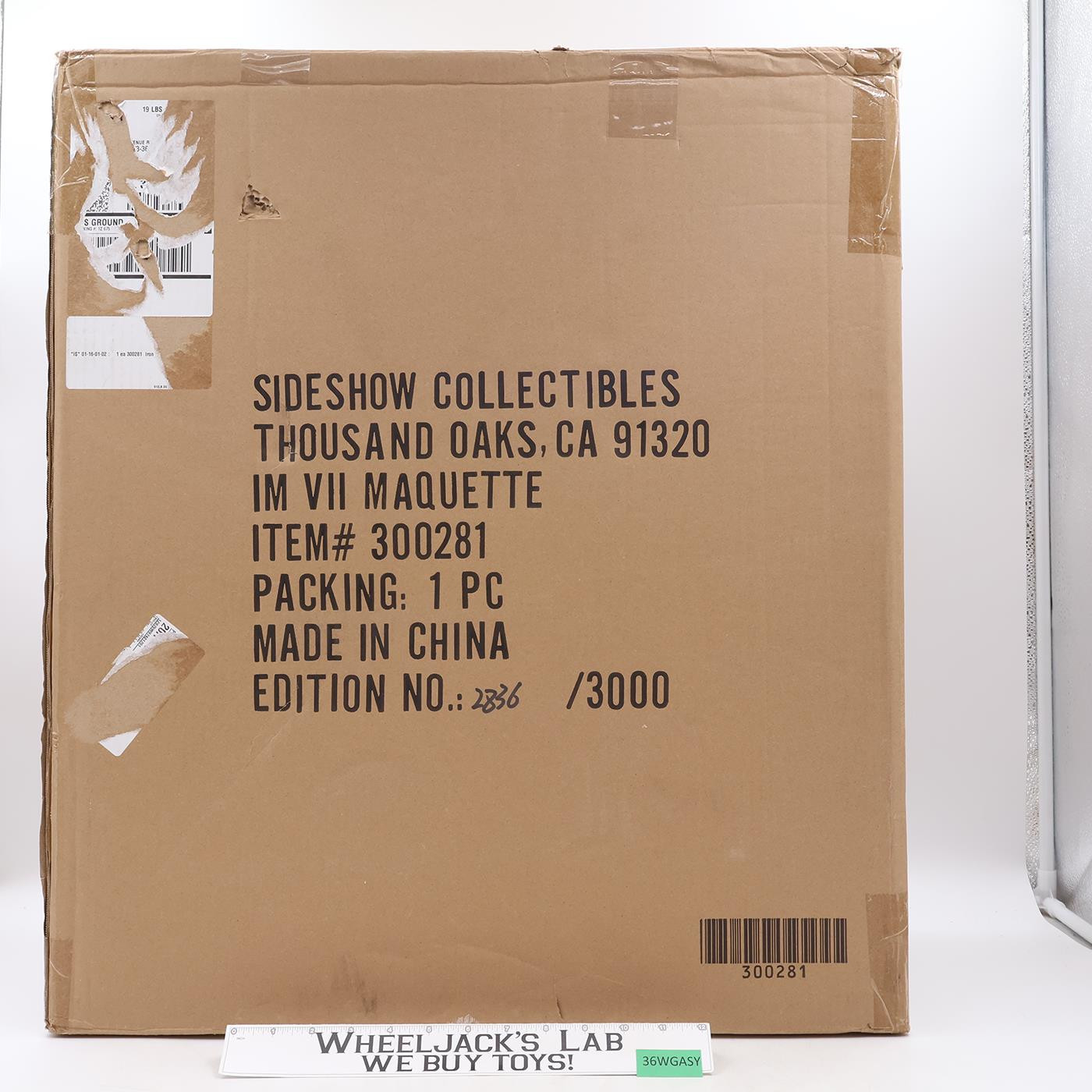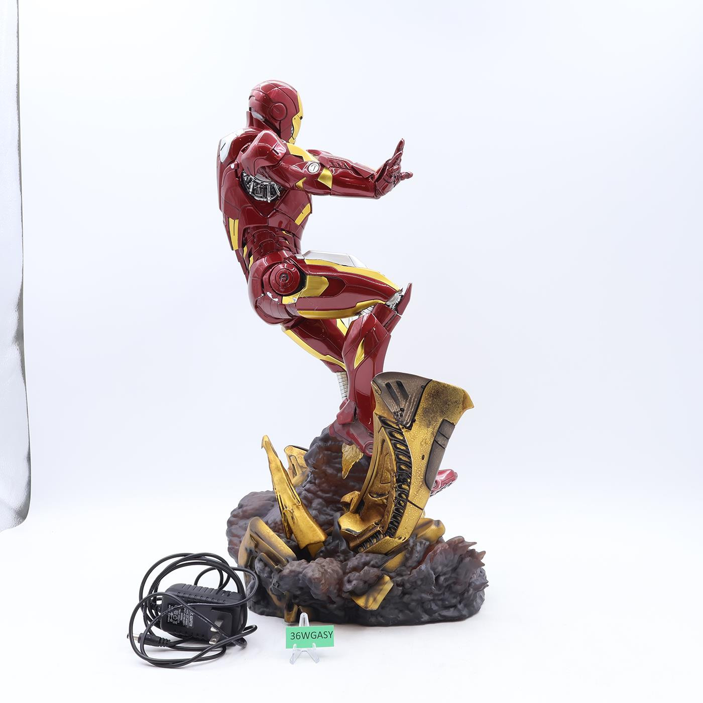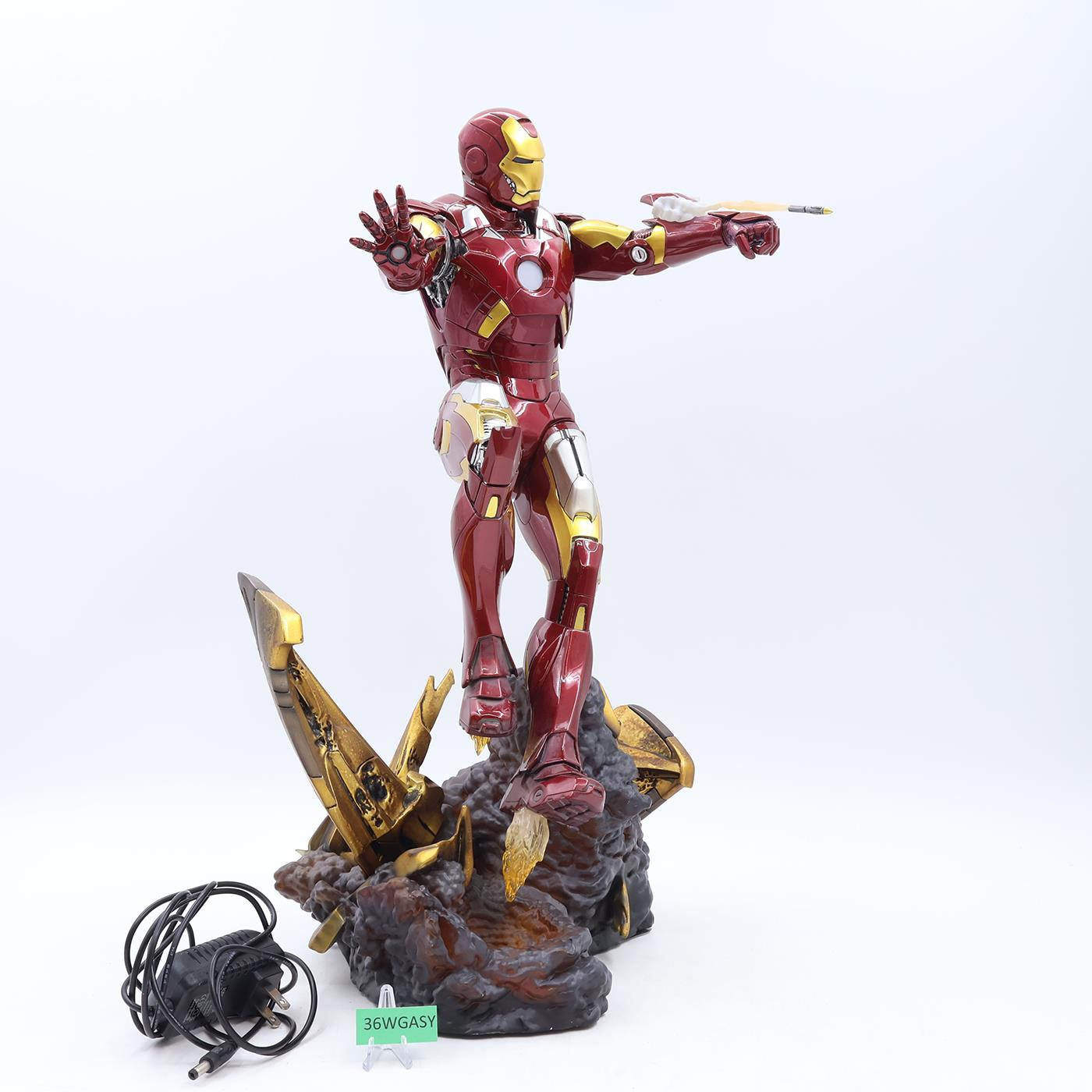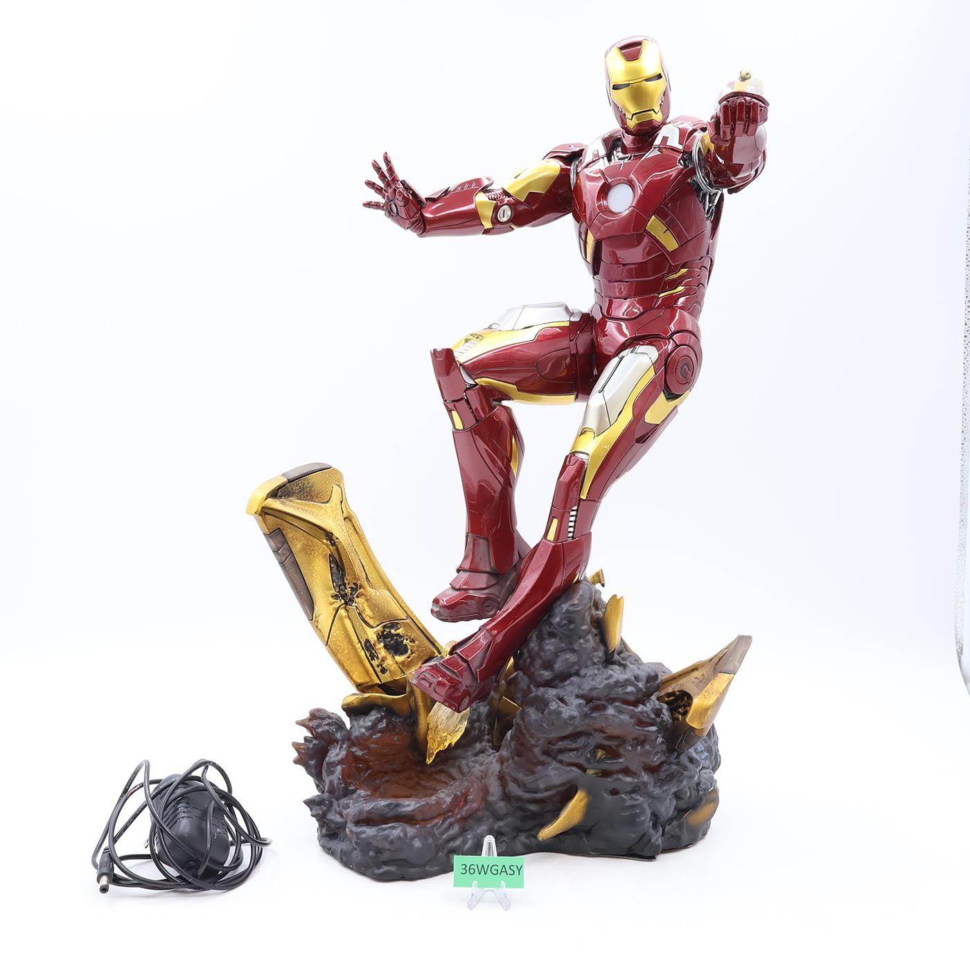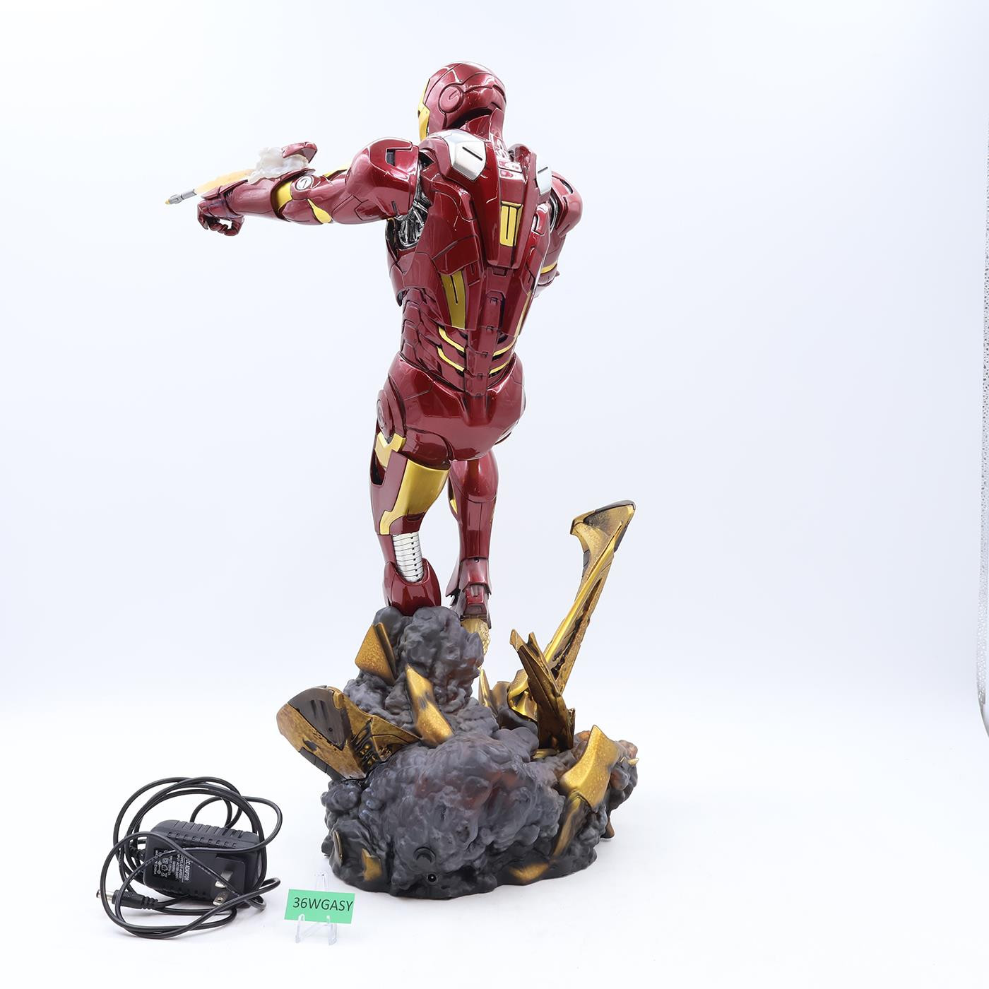 Item Condition: The item has some wear. There are scratches on his hip and shoulder. He has a broken finger. The rocket exhaust is glued on. The gold piece on the base looks to be glued in as well. The boots are a cloudy color. Numbered 2836 of 3000. The box has some wear and is torn. Comes as shown.