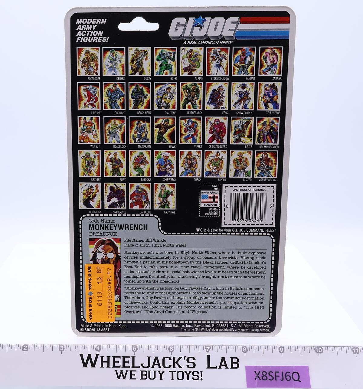 Monkeywrench V1 100% Complete W/Cardback 1986 GI Joe Vintage Action Figure