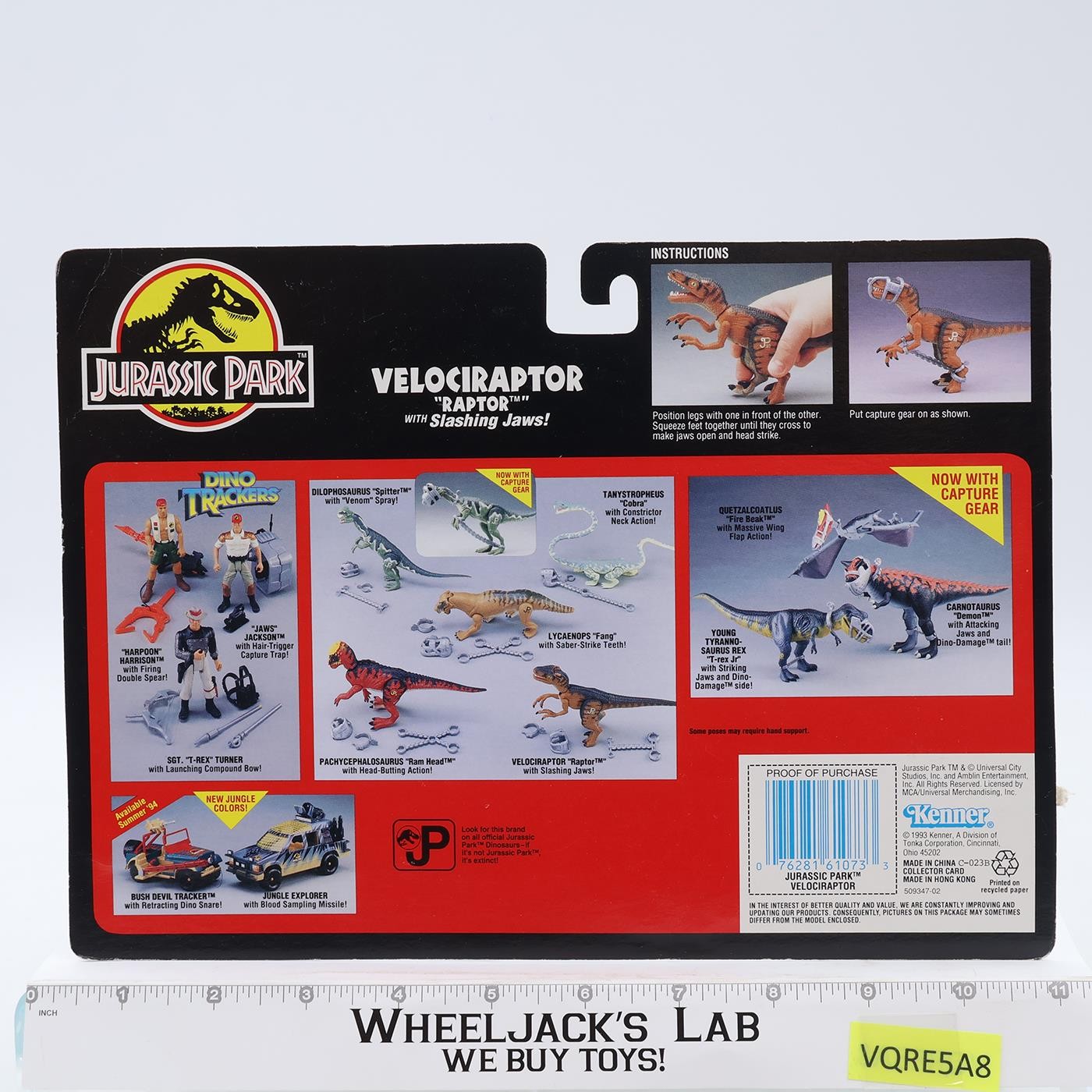 Velociraptor JP03 COMPLETE Jurassic Park Hasbro W/CARDBACK WORKS