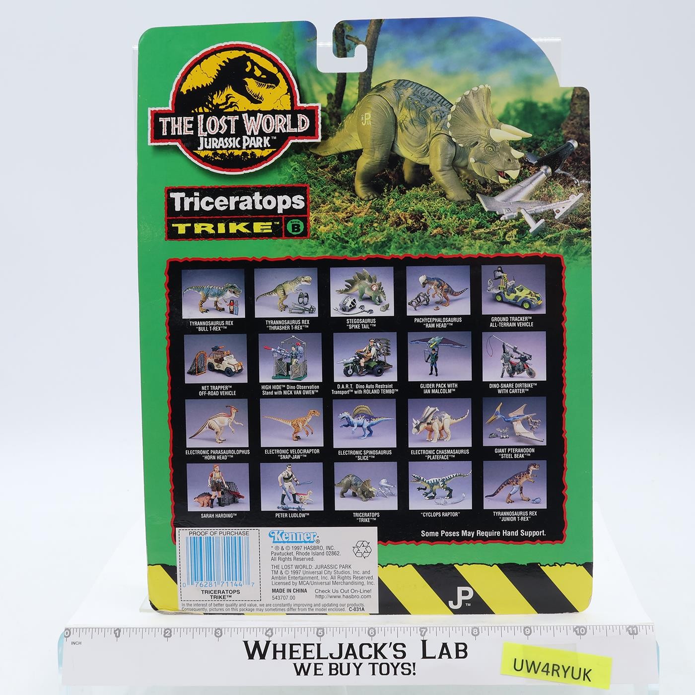 Triceratops Trike COMPLETE JP44 Jurassic Park The Lost World 1997 W/CARDBACK