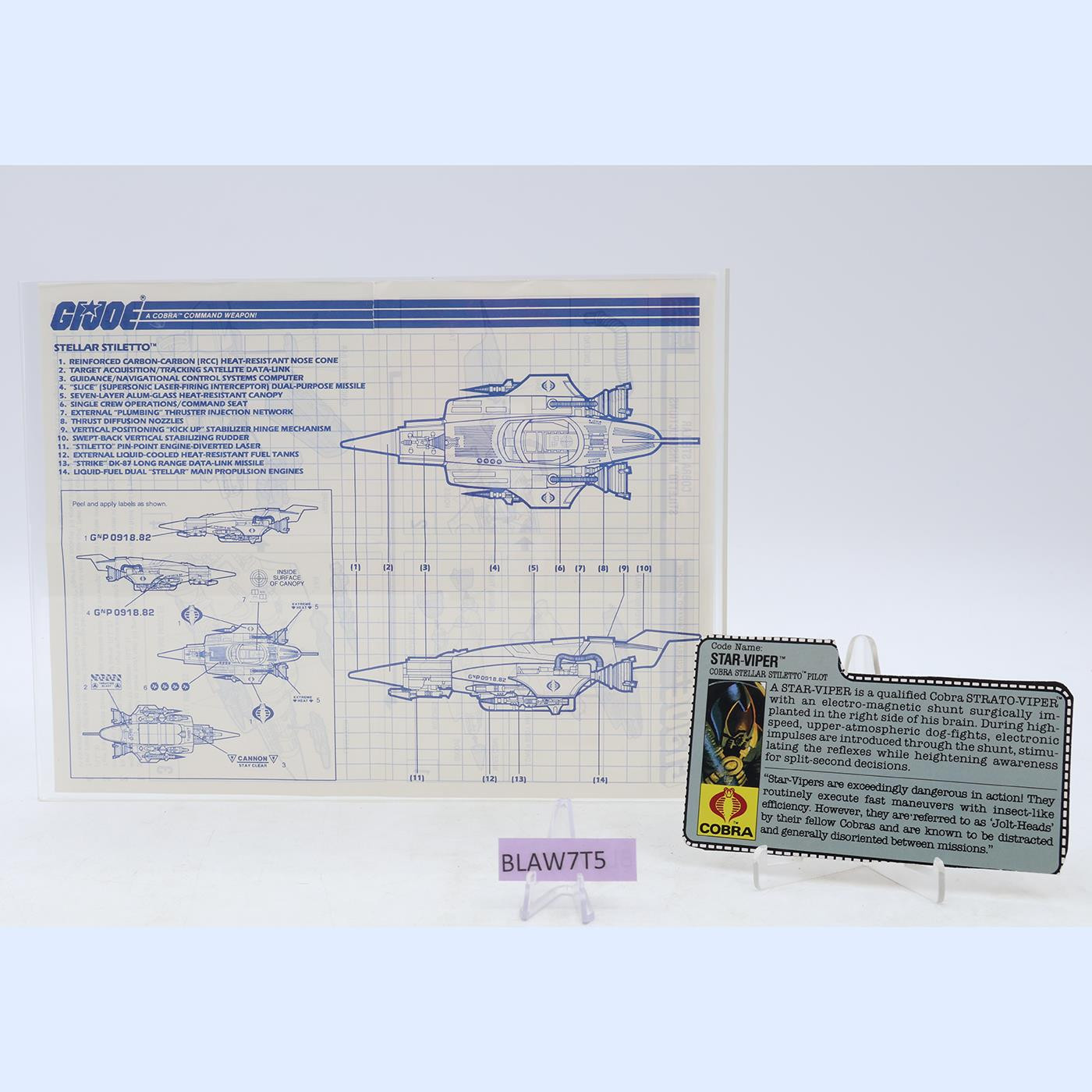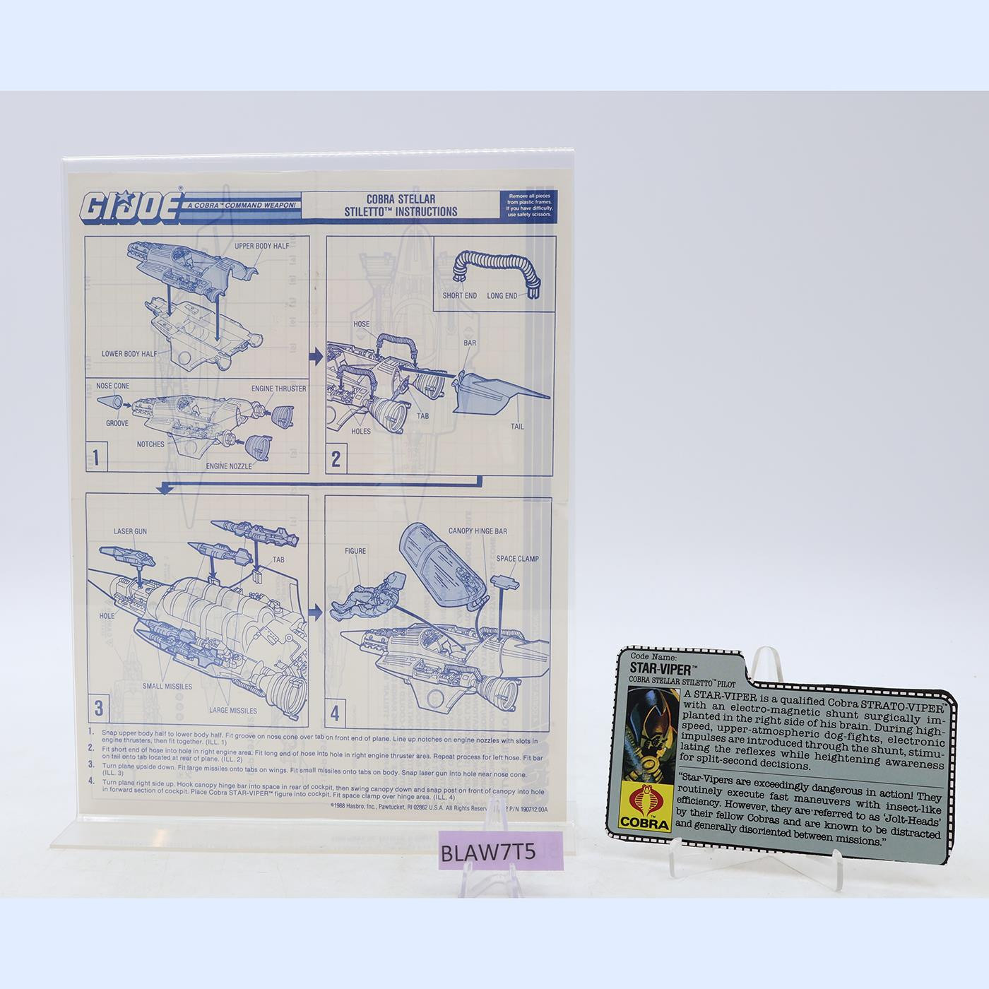 Stellar Stiletto W/Star Viper 100% Complete 1988 GI Joe Cobra Hasbro Vehicle
