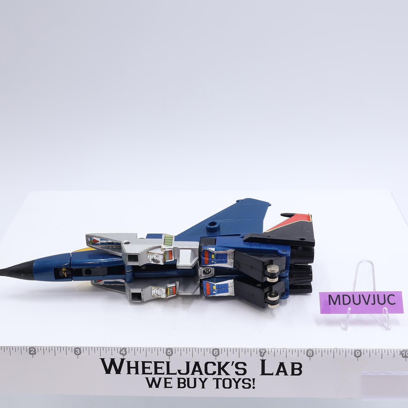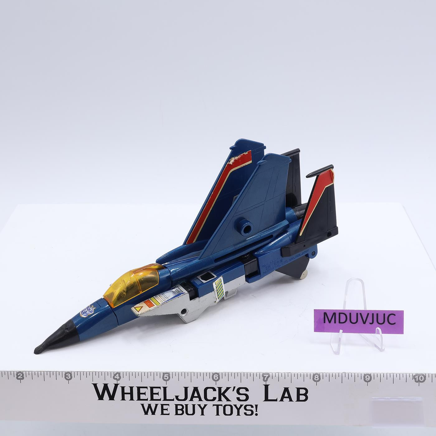 Figure Condition: Rated 80 with some wear. There appear to be bite marks on the nose of the jet, and the very tip is flattened. It is not broken. Our grading scale is 1 - 100, with mint flawless a 100, near mint a 95, excellent a 90, and so on. This item is an authentic original vintage Hasbro item. This item is not a fake, bootleg, reissue, remake, or encore. Comes as shown.