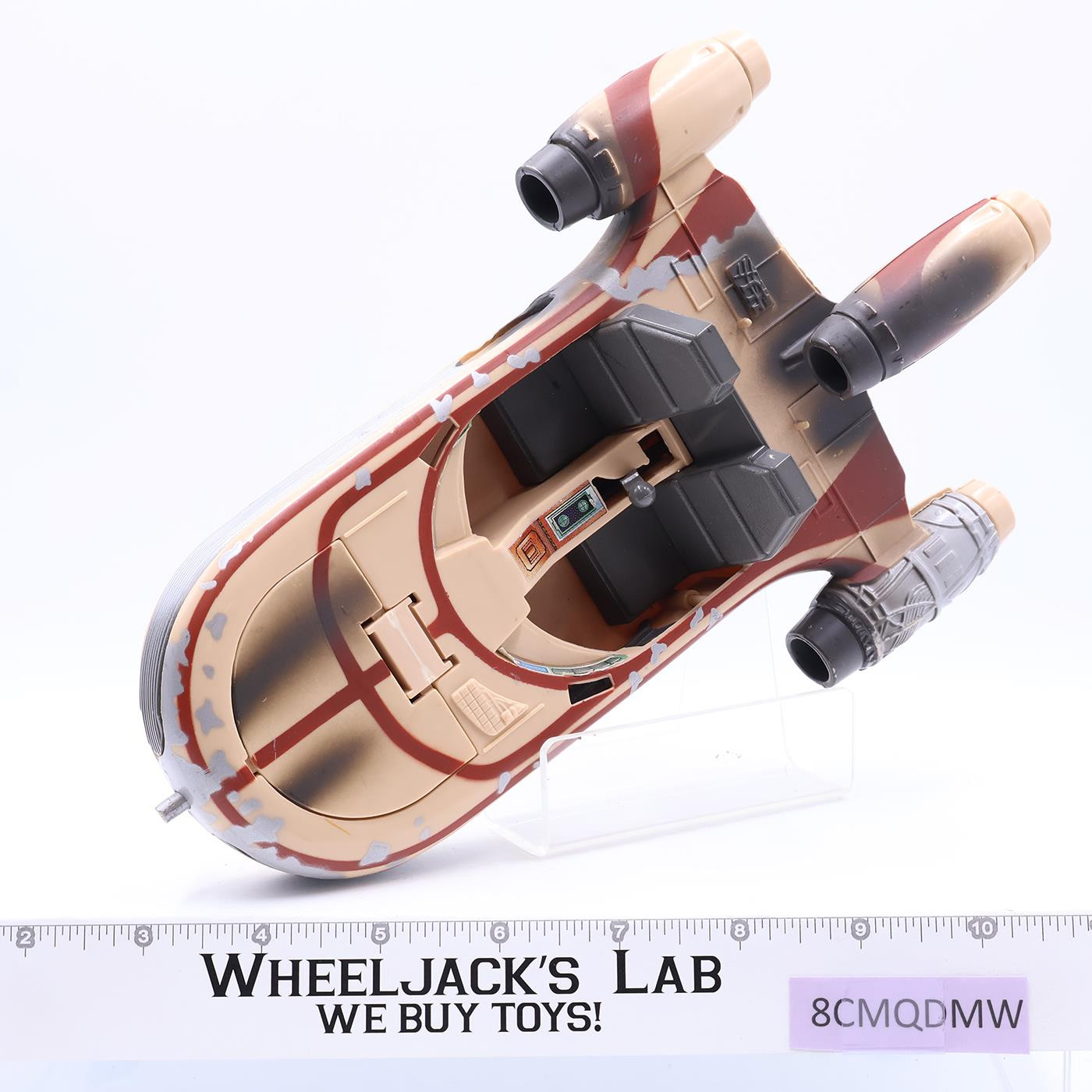Condition: Rated 85 with light wear. The hood's hinge has a stress mark. The gear to raise and lower the wheels works. It is not broken. Our grading scale is 1 - 100, with mint flawless a 100, near mint a 95, excellent a 90, and so on. Comes as shown.