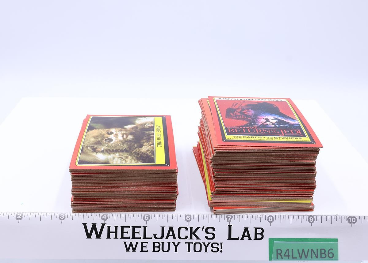 Condition: Complete set of 132 ROTJ Trading cards. The cards have some wear. There are no duplicates. Includes stickers 1-33; there are no duplicates, but they are in different colors. Comes as shown.