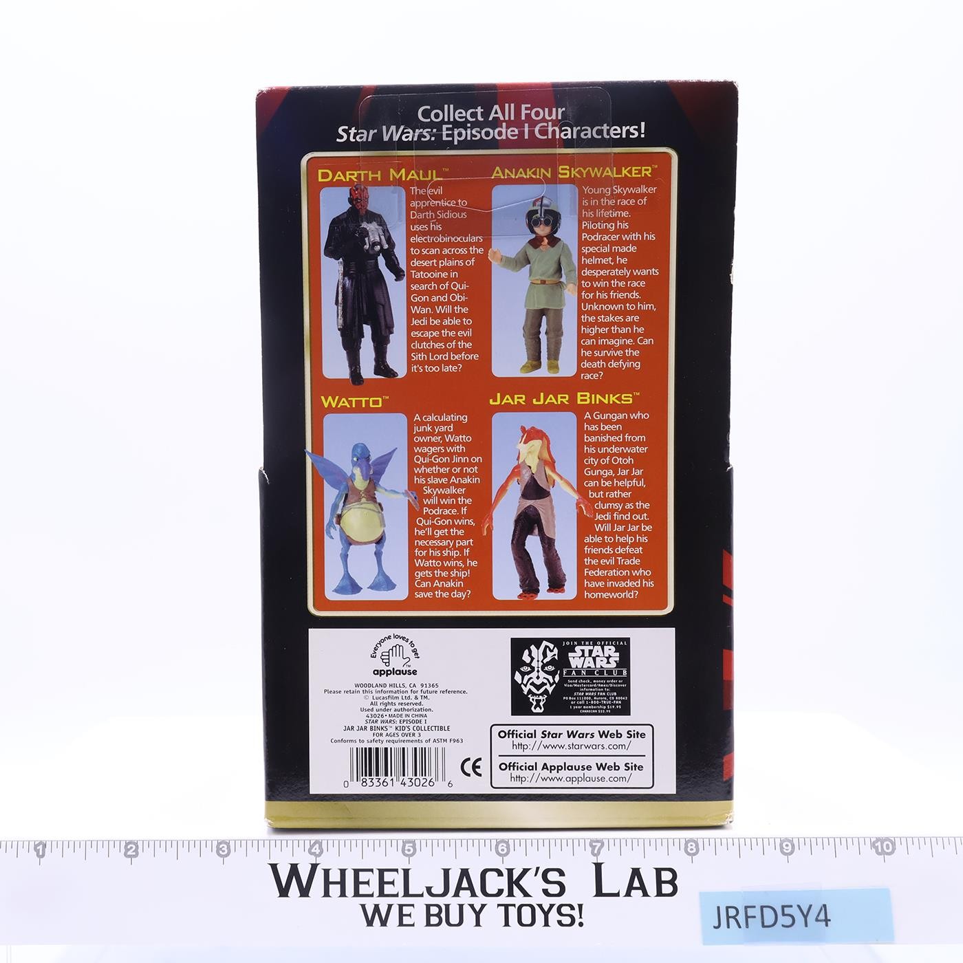 Jar Jar Binks Star Wars Episode 1 Kid's Collectible Applause NIB