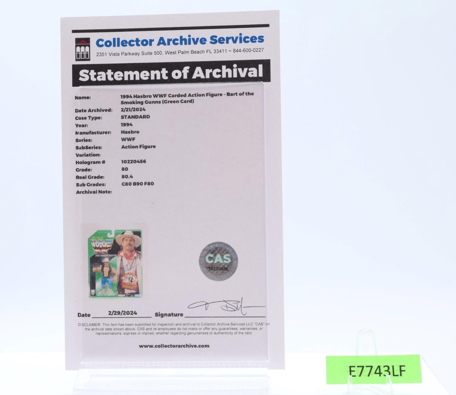 Bart of the Smoking Gunns CAS GRADED 80 80/90/80 WWF Series 11 Hasbro NEW SEALED