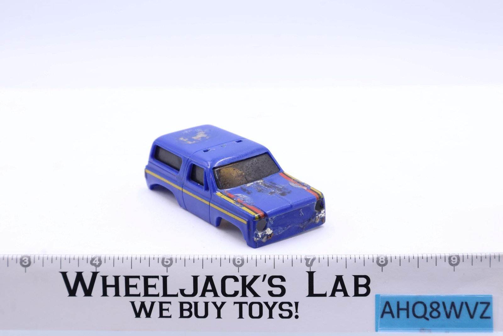 Condition: Body has heavy. Windows need cleaning. Missing roof lights as well as front and back bumpers. No cracks in body. Plastic on hood appears to have melt marks or glue residue. Finish on vehicle roof has been scratched; roof has unknown residue. Comes as shown.