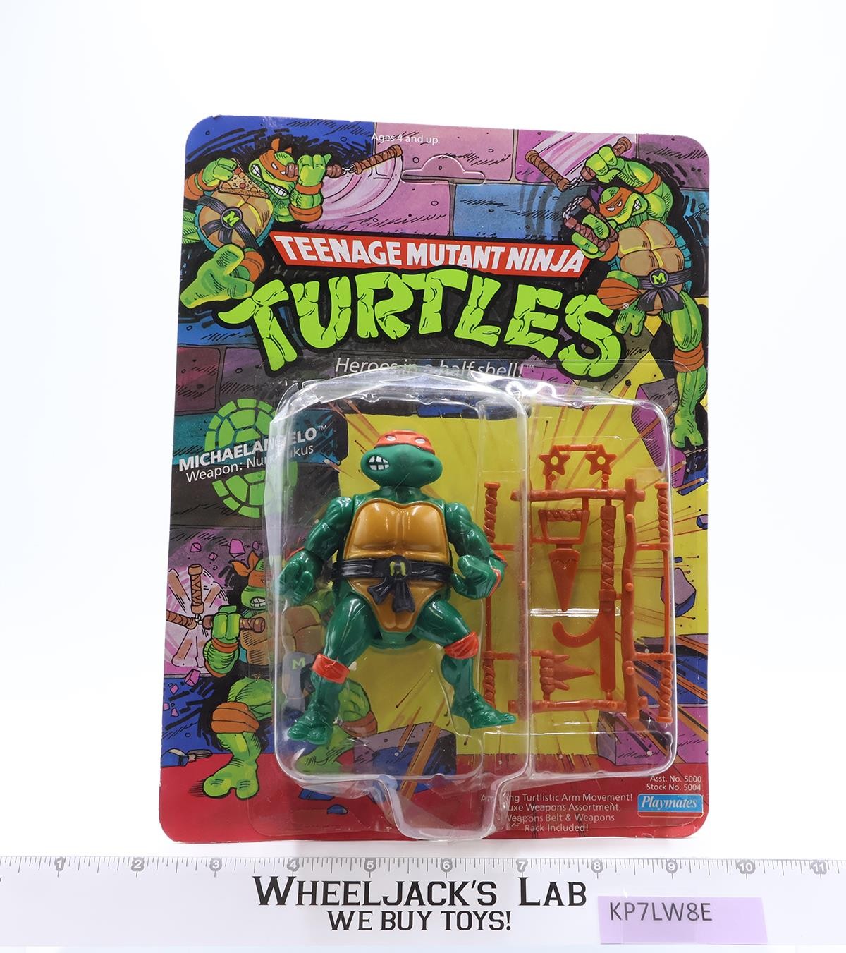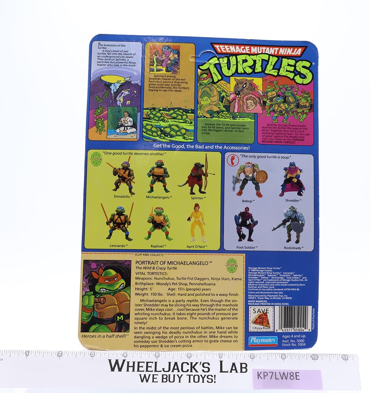 Michaelangelo 10 BACK Teenage Mutant Ninja Turtle 1988 Playmates UNPUNCHED MOSC