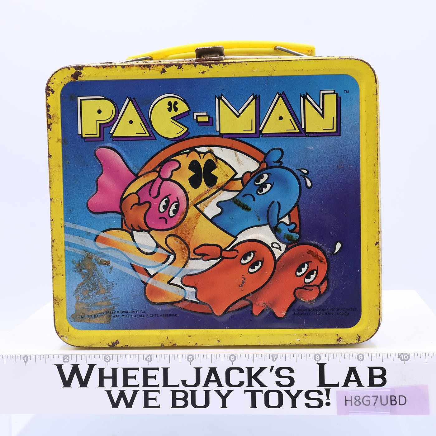 Pac-Man Metal Lunch Box ONLY 1980 Aladdin Vintage Bally Midway YELLOW