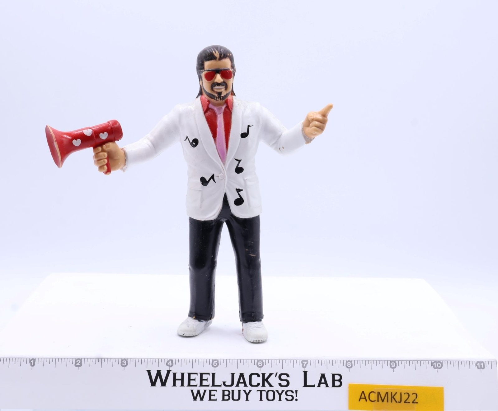 Condition: Hearts on the megaphone. Rated 83 with light wear; needs light cleaning. The figure has not had its paint touched up. My grading scale is 1 - 100, with mint flawless a 100, near mint a 95, excellent a 90, and so on. Comes as shown.