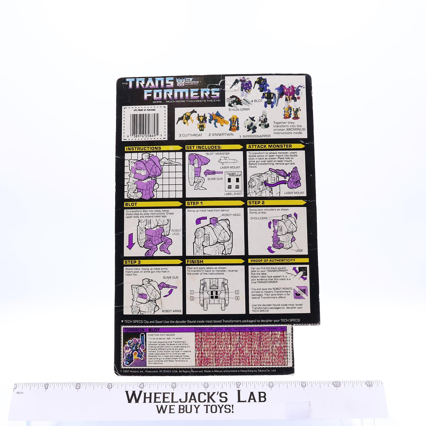 Blot Cardback 1987 Vintage Hasbro G1 Transformers Action Figure