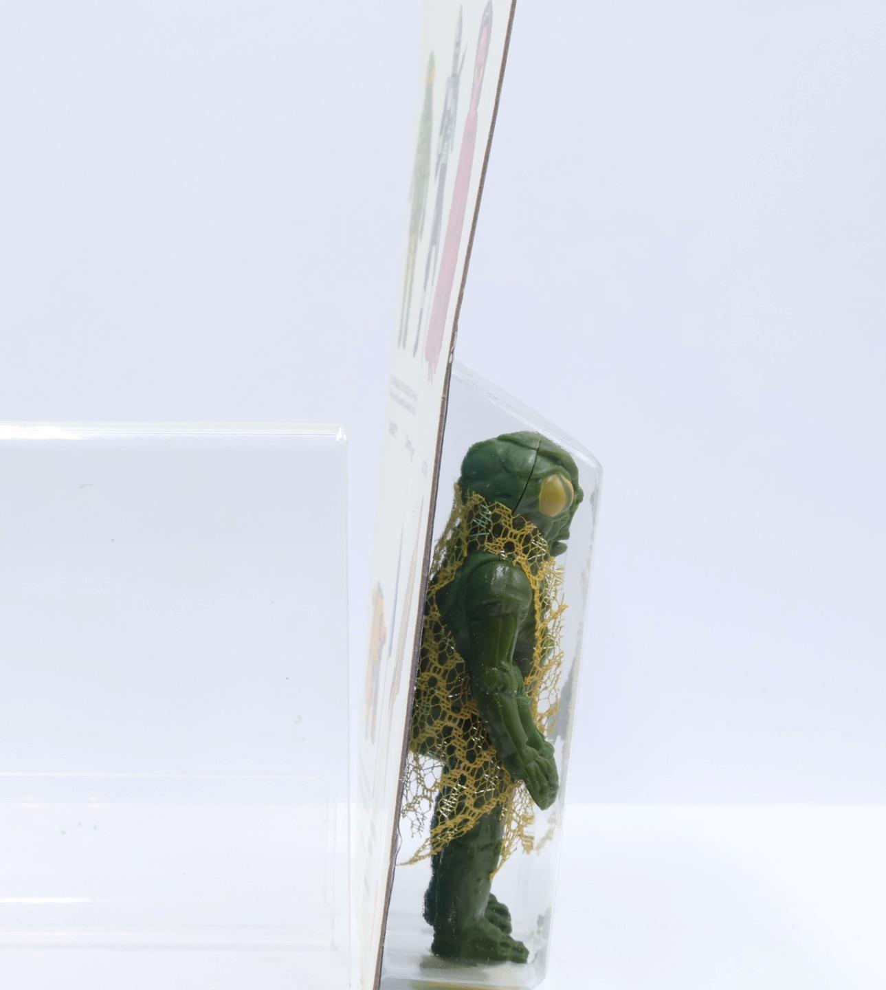 Package Condition: The card has some wear and is unpunched. The bubble is coming loose at the bottom. There is a cut in the card behind the figure therefore it has been opened. The bubble is clear but has some scratches. There is a crease in one top and one bottom corner. The pictures will show the card's condition.