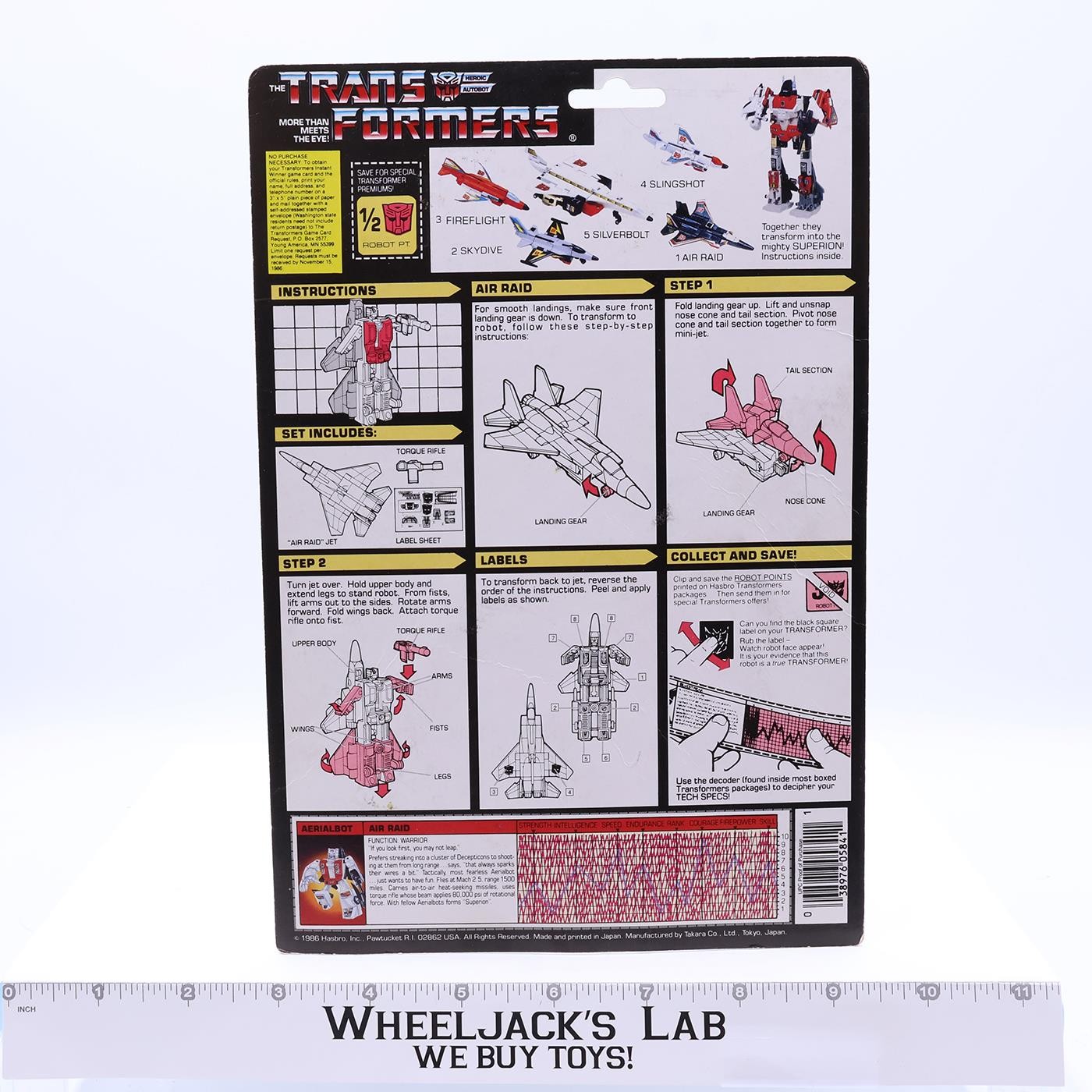 Air Raid Cardback Vintage 1986 G1 Transformers Hasbro Action Figure