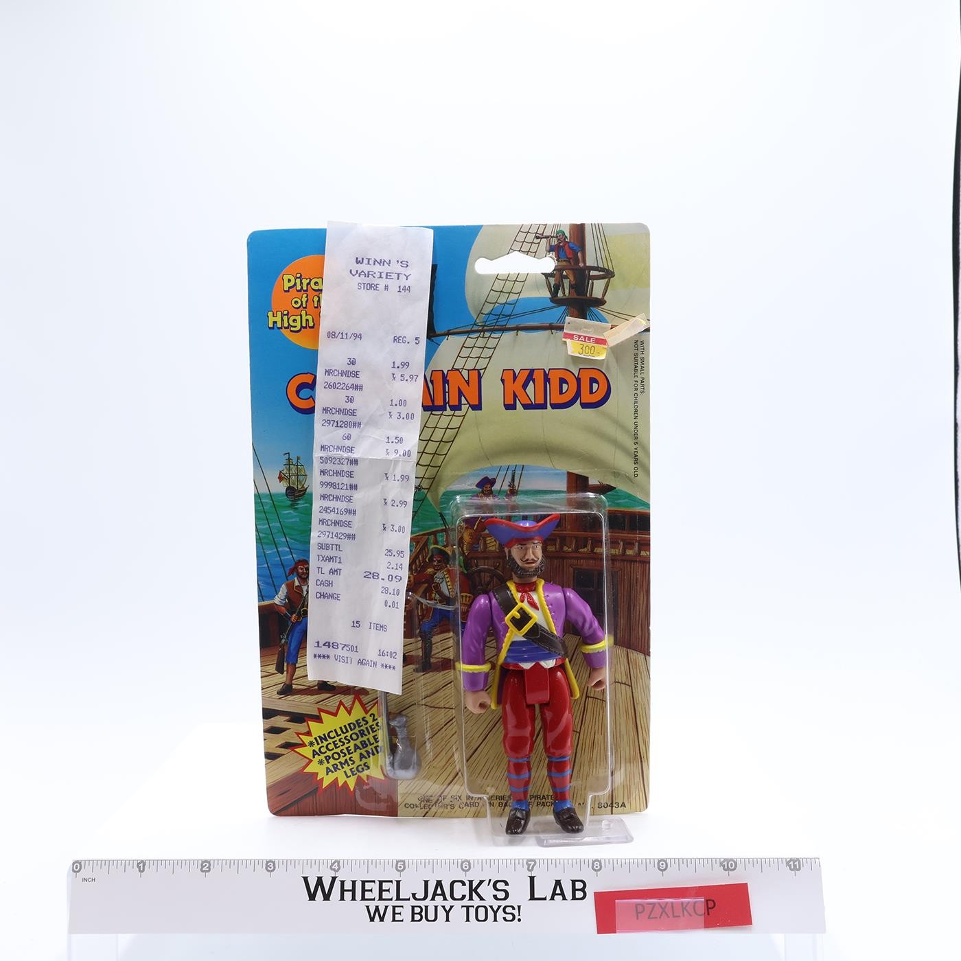 Condition: The item is mint and comes on a factory-sealed card. The original cash register tape is included. Card: The card has light wear. There is some sticker glue in one of the upper corners. The pictures will show its condition. Bubble: Clear with a small dent under the pirate's boots. It comes as shown.