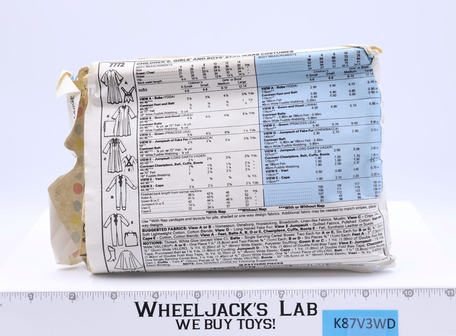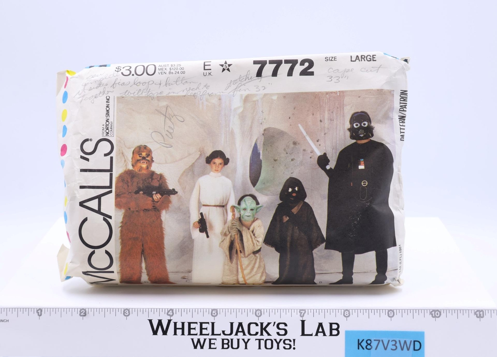 #7772 Star Wars Costumes Sewing Patterns Size Large 1981 McCall's