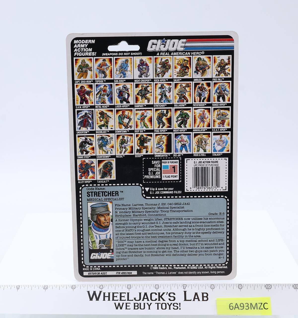 Stretcher V1 W/ 34 Cardback 1990 GI Joe ARAH Vintage Hasbro Action Figure