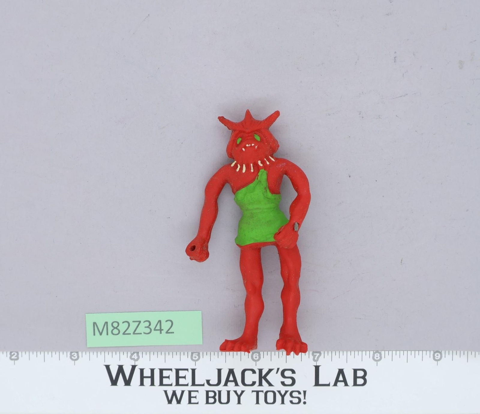 Condition: Rated 80 with some wear and needs cleaning. It has a wire sticking out of his left wrist. It's not broken. Our grading scale is 1 - 100, with mint flawless a 100, near mint a 95, excellent a 90, and so on. Comes as shown.