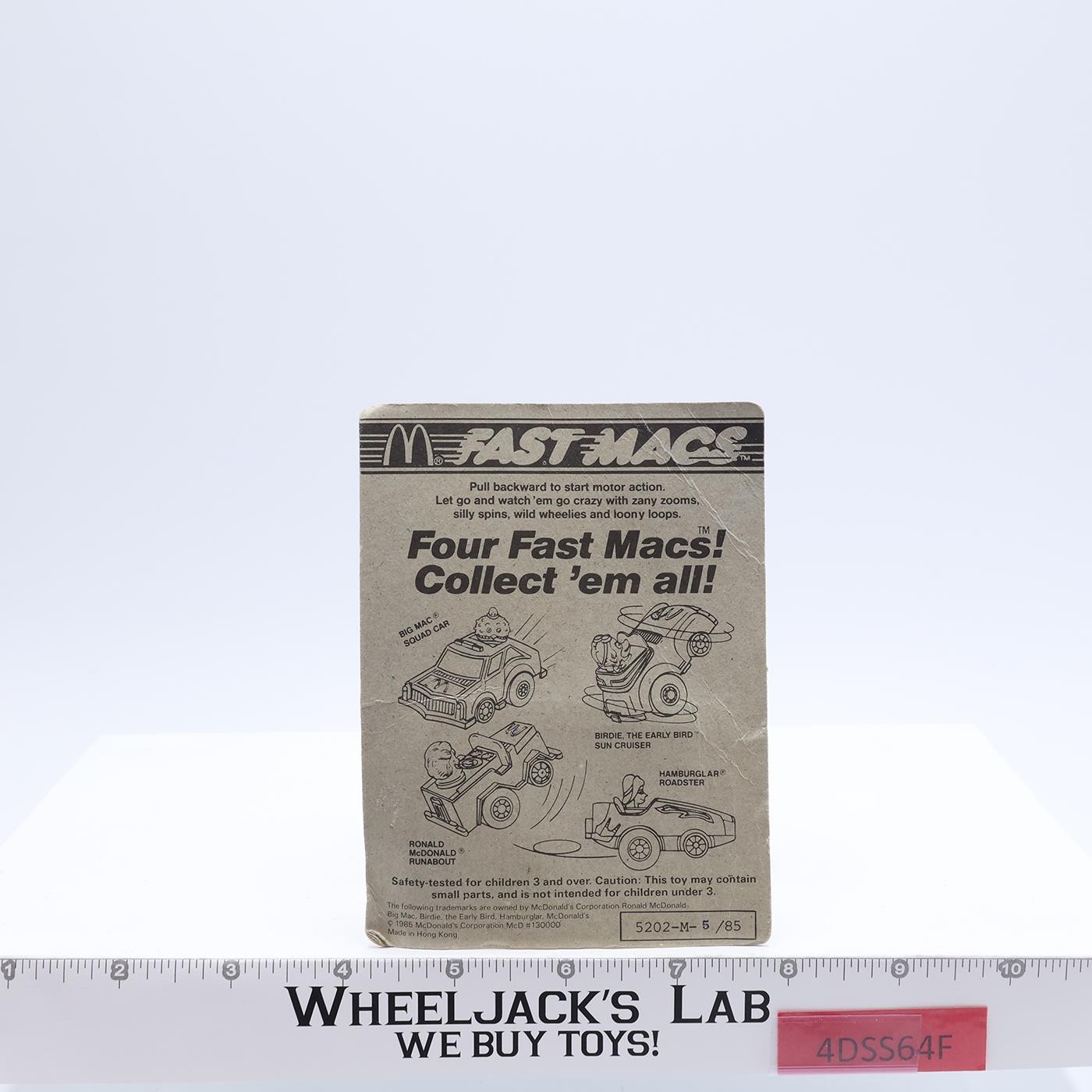 Ronald McDonald Fast Macs Pull-Back Car 1985 McDonald's Corp. Vintage NEW SEALED