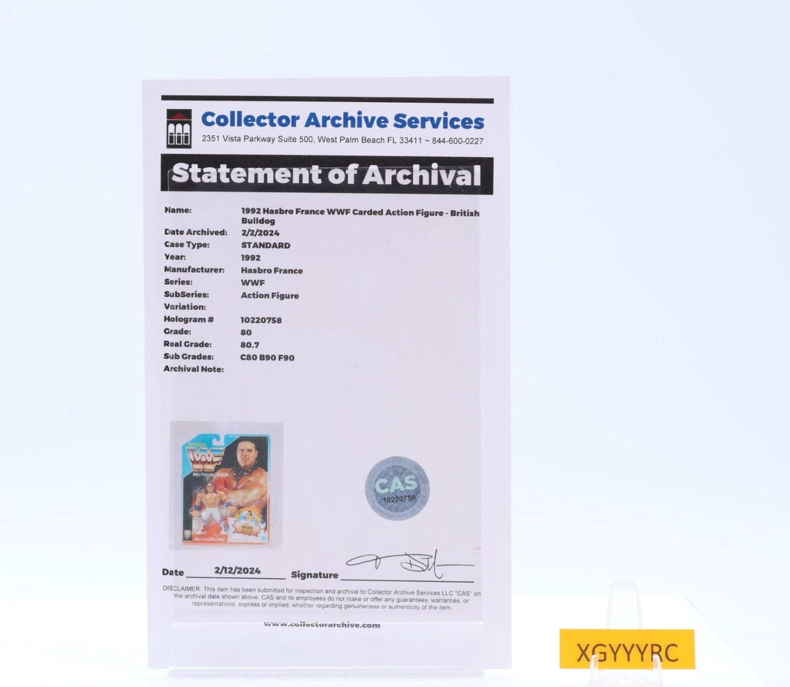 British Bulldog CAS GRADED 80 80/90/90 WWF Series 4 1992 Hasbro Figure SEALED
