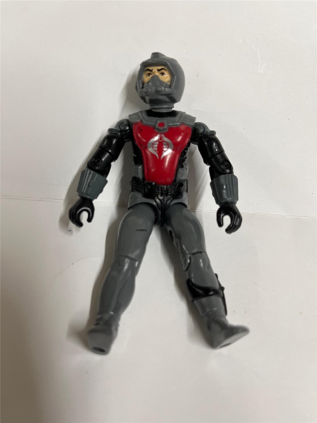 Condition: Rated 85 with light wear and fading. It's not broken. No elbow cracks. After photo was taken, some melted wax was cleaned off the torso near cobra image (after is shown in last photo). Stray black marks on chest and right thigh. Our grading scale is 1 - 100 with mint flawless a 100, near mint a 95, excellent a 90, and so on. Comes as shown.
